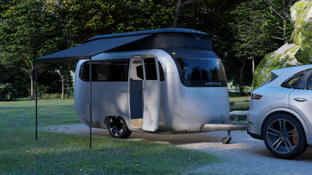 Pour permettre de tracter le Studio F. A. Porsche Concept avec des véhicules plus petits et réduire son impact sur l’autonomie des VÉ, Airstream a utilisé des matériaux plus légers et amélioré son aérodynamisme.