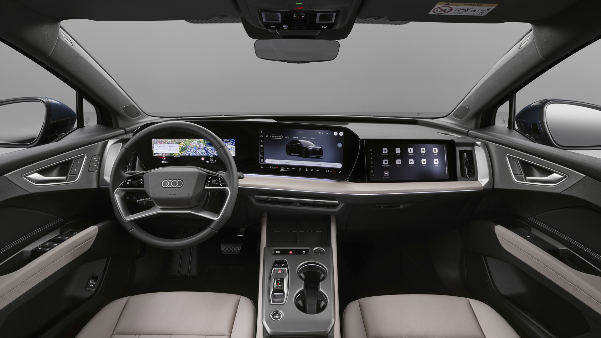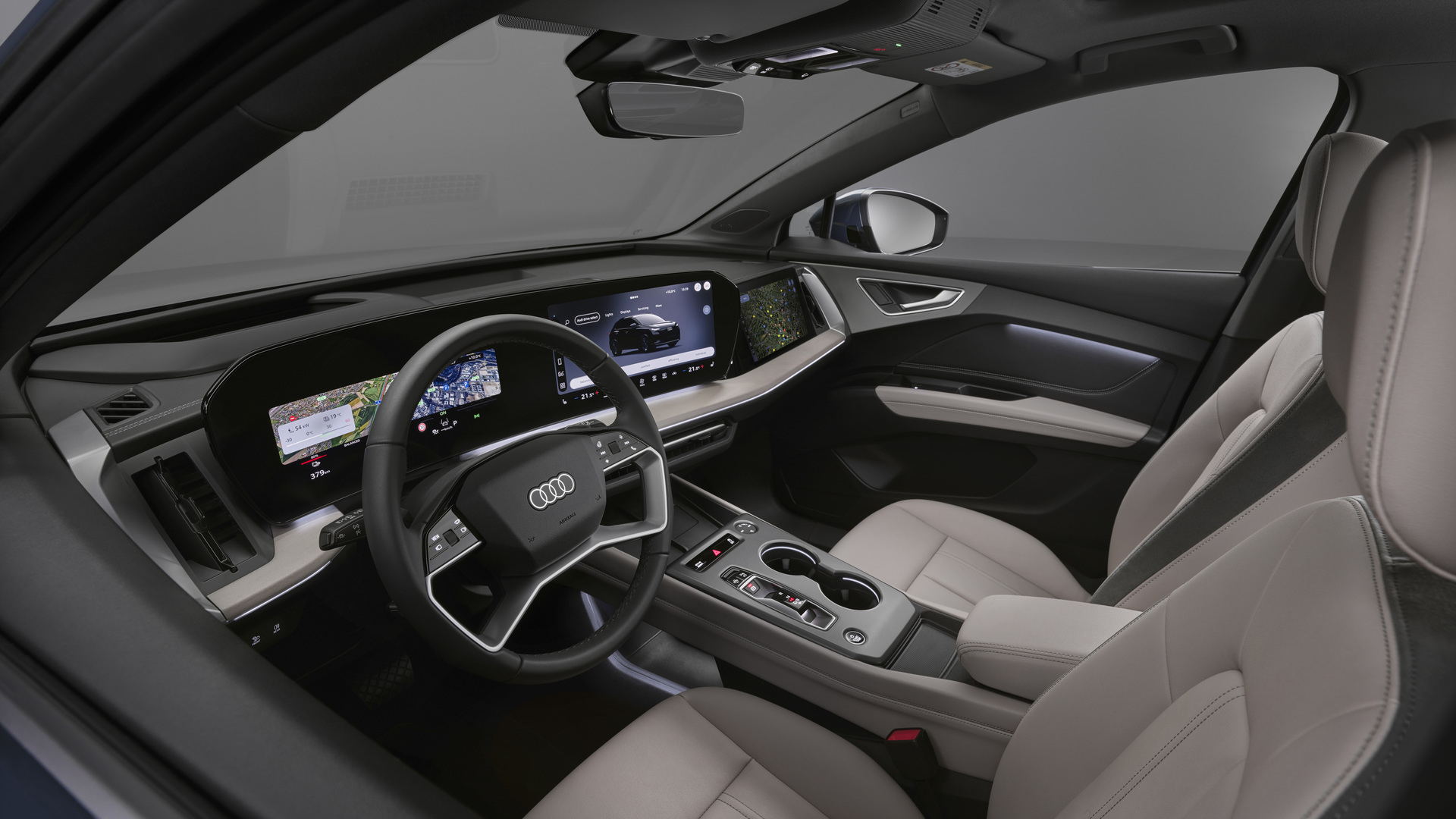 Visant à aligner le Q4 e-tron sur les nouveaux modèles de la marque, cette mise à jour donne au VUS électrique des écrans nettement plus grands pour l’affichage des informations du conducteur (11,9 pouces) et le système d’infodivertissement (12,8 pouces), lesquels sont intégrés dans un seul panneau de verre.