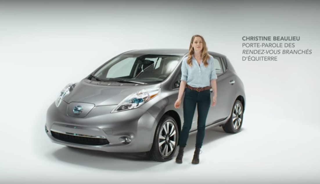 Au cours des derniers jours, la comédienne Christine Beaulieu, porte-parole des rendez-vous Branchés d’Équiterre, a entrepris un dangereux périple : parcourir la distance reliant Montréal à Havre Saint-Pierre, 1048 kilomètres, en voiture 100% électrique, une Nissan Leaf 2016. Entrevues, couverture en direct, communiqués de presse, rien n’a été ménagé pour faire connaître l’exploit de la valeureuse défenderesse des droits de la voiture électrique.