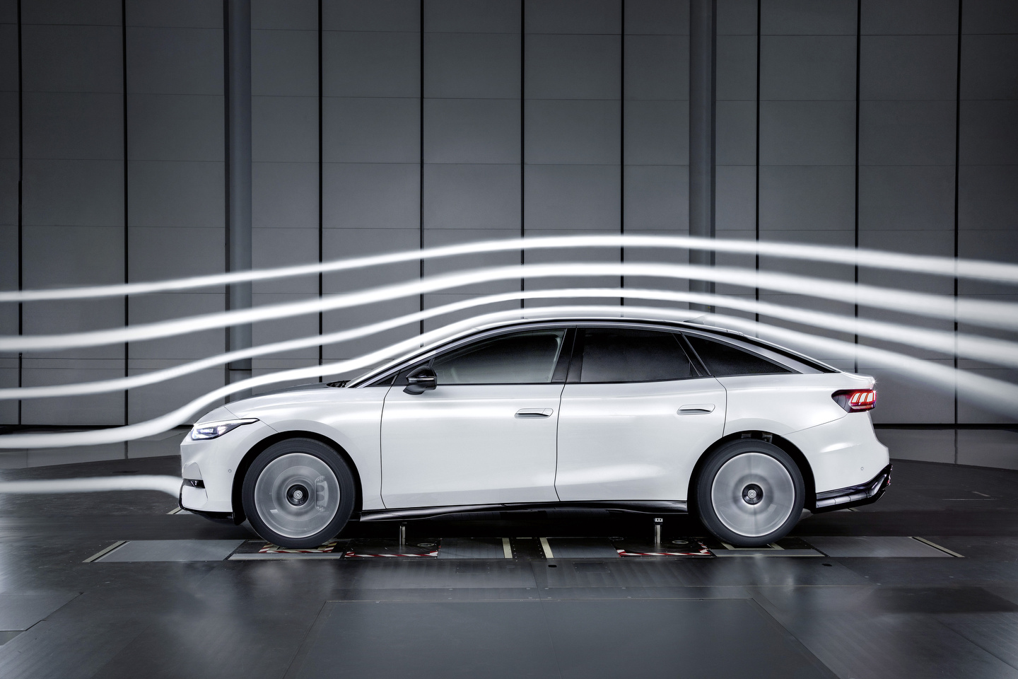 La Volkswagen ID.7 atteint une autonomie de 700 km grâce à une aérodynamique supérieure et à un faible coefficient de traînée.