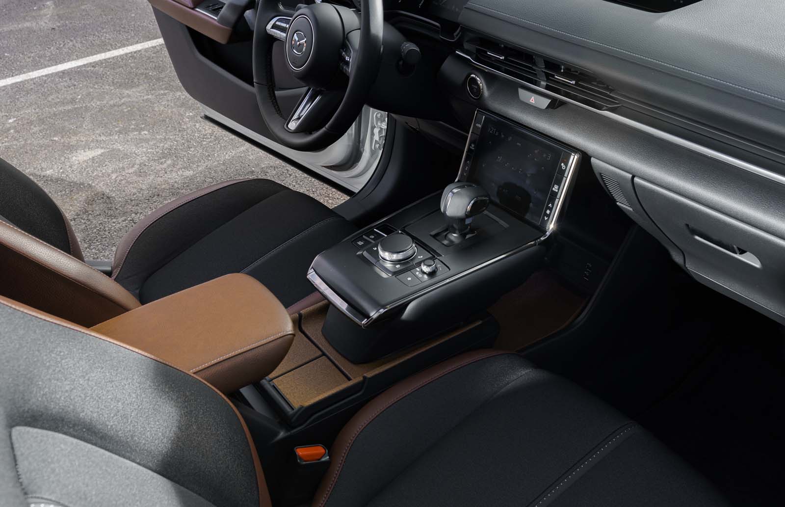 Mazda expérimente également de nouveaux matériaux dans son premier véhicule électrique, le MX-30, dont les panneaux de porte sont fabriqués à partir de bouteilles recyclées. En outre, les sièges comportent 20 % de fils recyclées et la console centrale est recouverte de liège, un matériau durable qui est utilisé à la fois pour créer un style plus écologique et pour rappeler l’origine de Mazda en tant qu’entreprise de traitement du liège.