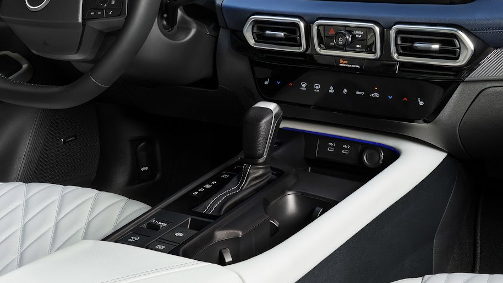 Sous l’écran du centre, les designers ont transformé les trois buses d’aération circulaires de la Sentra en une forme rectangulaire modernisée. Au centre, on retrouve maintenant des commandes pour la radio.