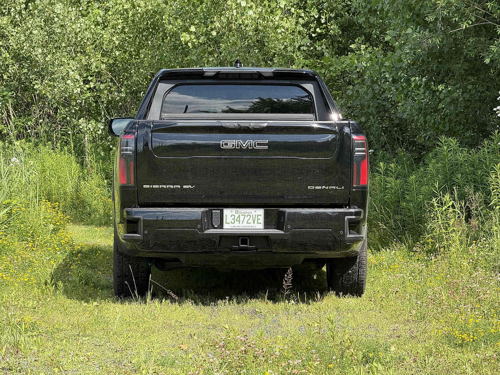 Sur la route, c’est étonnamment raffiné. La suspension absorbe les pires chaussées, la direction est précise (surtout avec la direction arrière activée), et la palette de régénération vous permet presque de conduire sans freiner. En la maintenant enfoncée, le Sierra reste immobile une fois à l’arrêt. Il peut remorquer jusqu’à 10 000 lb, transporter plus de 1 300 lb dans la caisse, et il est réellement plaisant à conduire. On oublie sa taille… jusqu’à ce qu’on tente de le stationner.