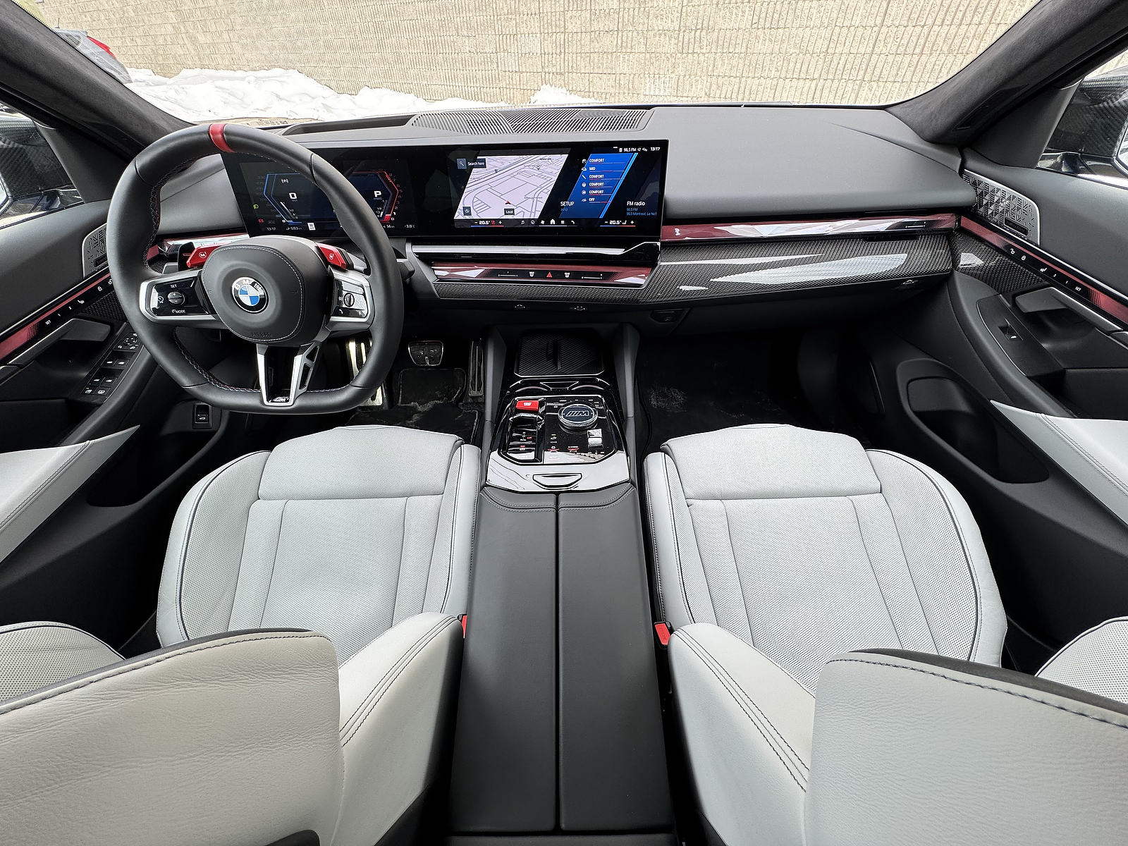 Les prix ? Au Canada, la berline M5 se vend à partir de 135 000 $, et la Touring (oui, nous avons la familiale !), à partir de 138 000 $. Mon modèle d’essai, équipé de l’ensemble M Carbon de 4 400 $, de freins améliorés et de quelques autres gadgets, a coûté environ 145 000 $. Franchement ? Pour la performance et le pedigree, ce n’est pas exorbitant, surtout si l’on considère la folie des prix des voitures neuves au Canada en ce moment.