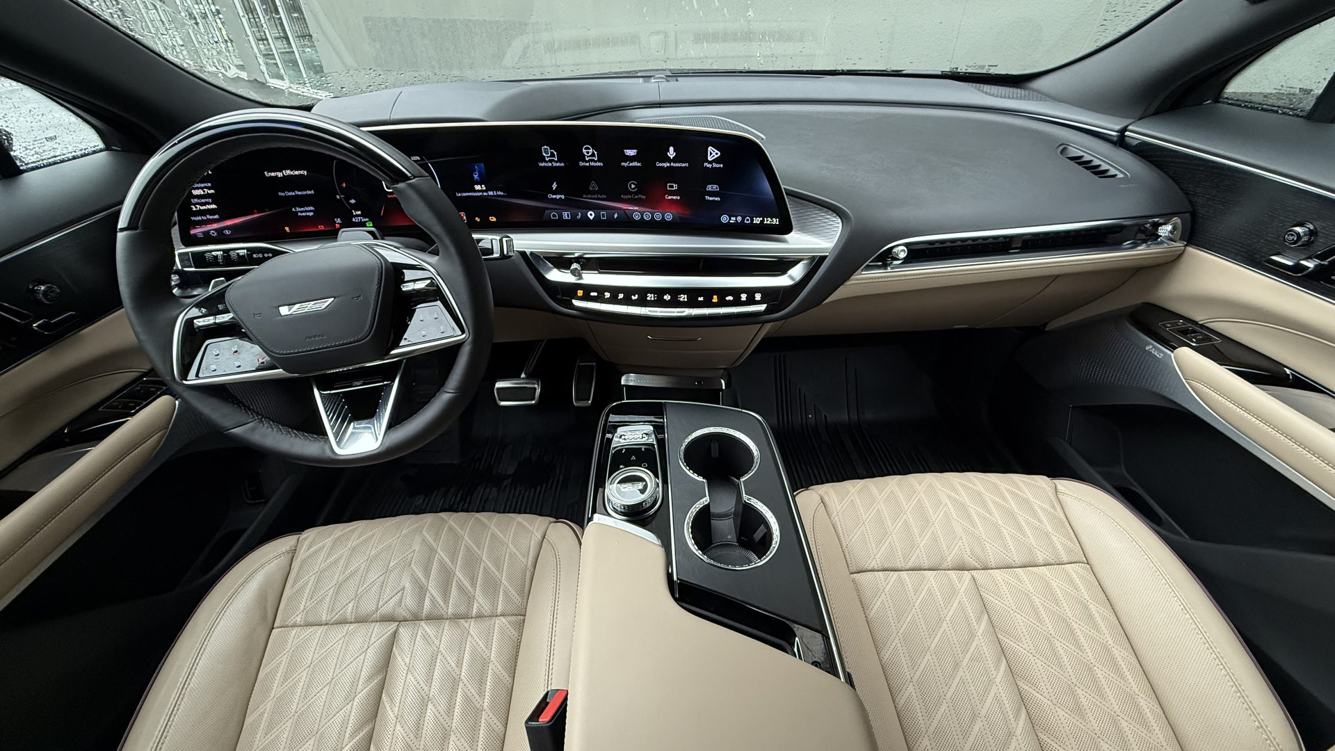 À bord, la qualité d’assemblage et de finition de la Cadillac est excellente. Les matériaux ont une apparence et un toucher coûteux. L’écran géant est facile à utiliser. Mieux encore, il y a encore de vrais boutons physiques là où ça compte. L’interface homme-machine est conviviale au lieu d’être compliquée uniquement pour l’apparence. On s’assoit, on appuie sur la pédale de frein, et on part.