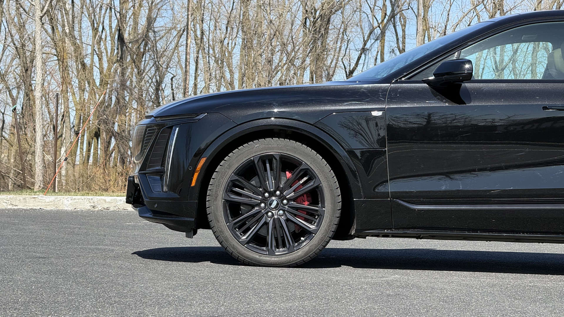 Le Lyriq-V débute à environ 95 000 $, soit à peu près 20 000 $ de plus qu’un Lyriq ordinaire. On obtient bien les améliorations attendues : suspension, freins et groupe motopropulseur plus puissant. Le modèle d’essai est la version Premium, qui ajoute du cuir Nappa perforé et des étriers de frein peints en rouge, même si je ne suis pas convaincu que l’ensemble mérite son supplément de 6 500 $.