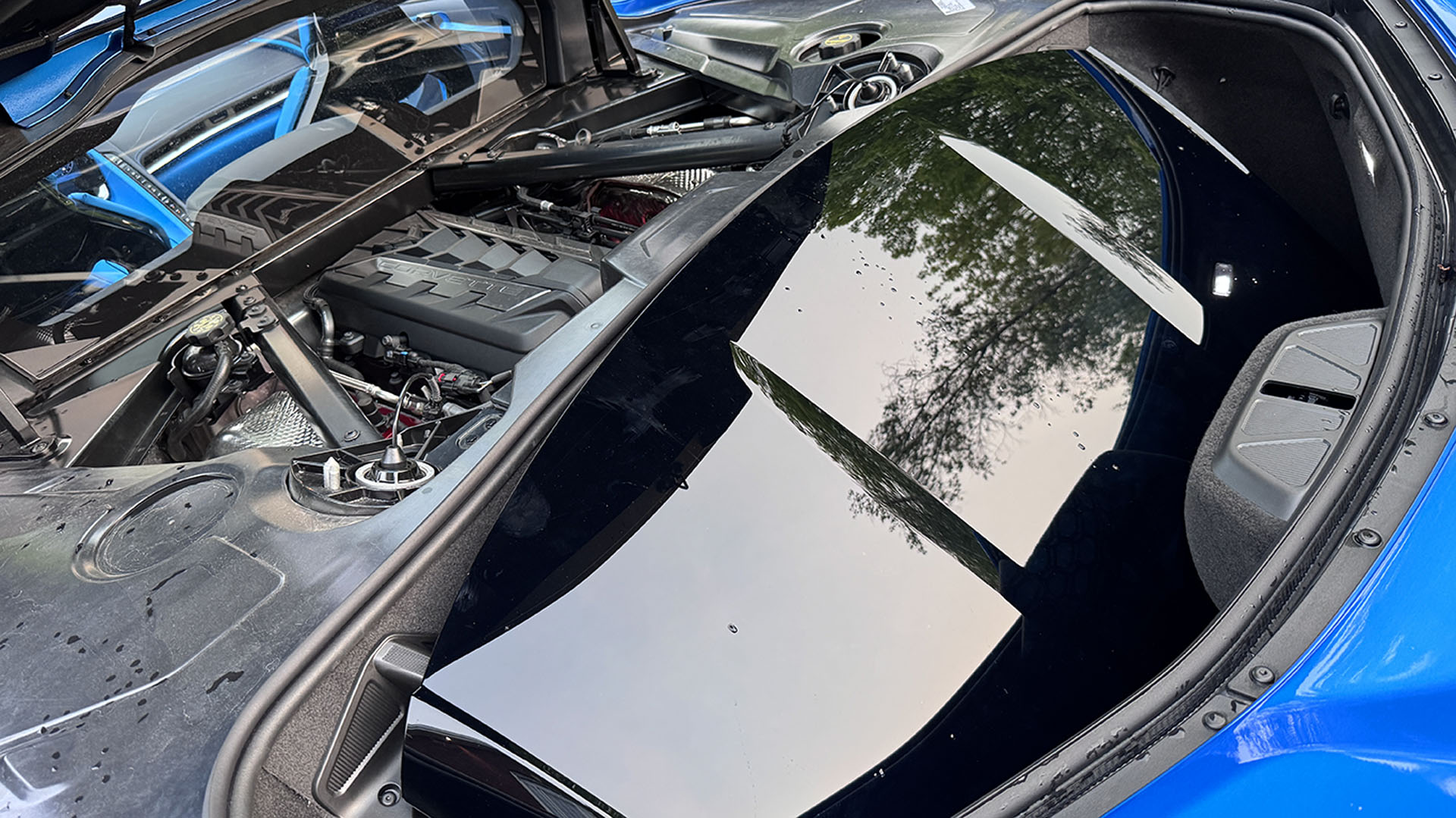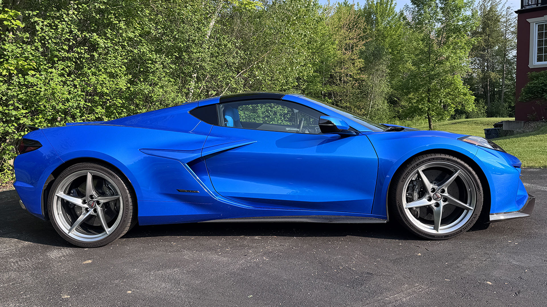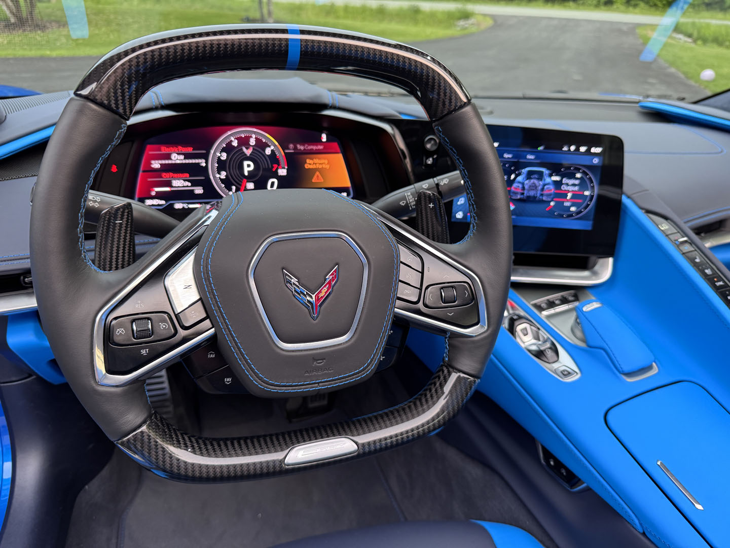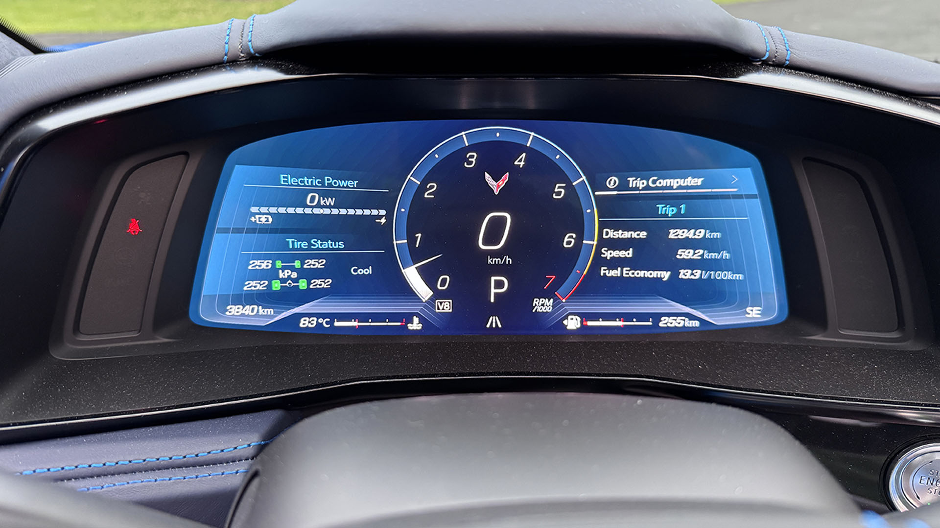 Le surpoids d’environ 90 kg (200 lb) comparé à la Stingray ne se fait pas sentir dans les transitions rapides, grâce au couple immédiat et aux pneus larges. À l’inverse, la E-Ray est plus facile à conduire au quotidien que la Z06. Le V8 LT2 est plus souple, plus civilisé en ville, et combiné à l’assistance électrique, il offre une grande réactivité à basse vitesse.