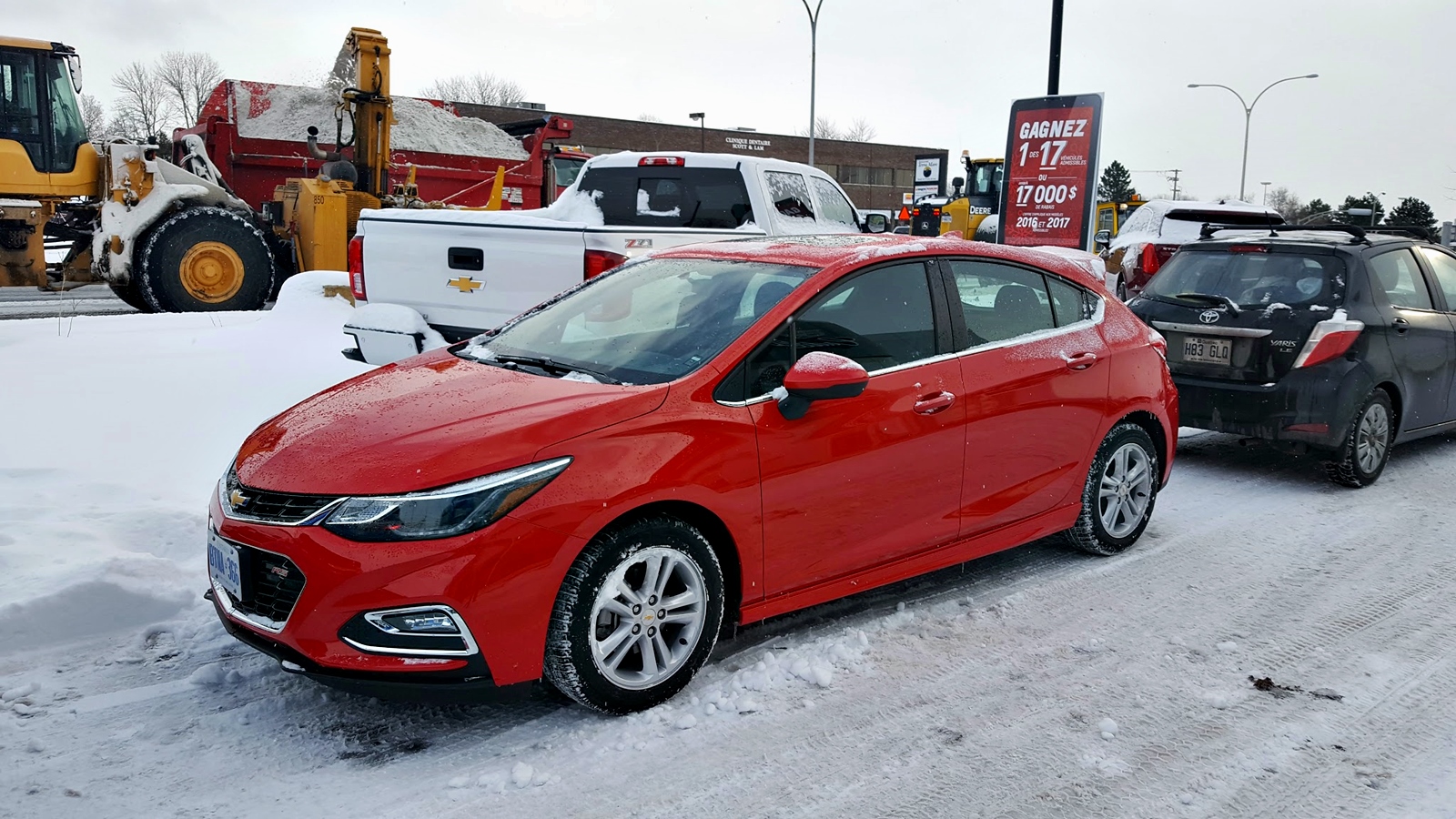 (Saint-Sauveur, Québec) – La journée en est une de début d’hiver. La neige tombe, mais la température proche du point de congélation la transforme en une gadoue salissante. Pour rouler sur les routes de campagne des Laurentides, il faut alors compter sur beaucoup de lave-glace. Ce genre de conditions est toutefois idéal pour permettre de mettre à l’épreuve la nouvelle Chevrolet Cruze hatchback 2017.