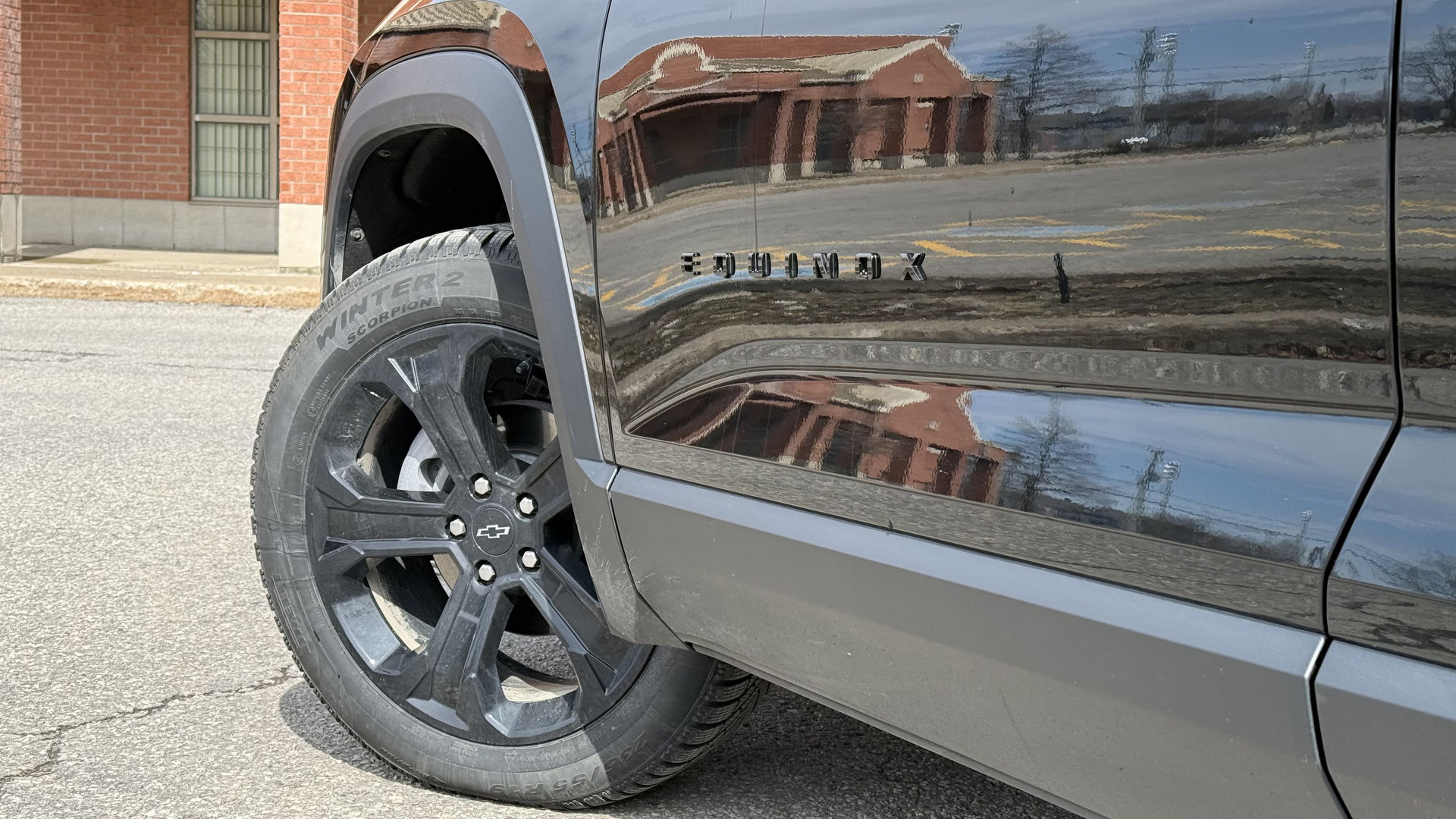 Elle emprunte beaucoup au plus gros Traverse, et c’est une bonne nouvelle. L’avant a plus de caractère, plus de présence et une identité visuelle bien plus affirmée que tous les anciens modèles n’ont jamais réussi à afficher. La signature lumineuse est plus nette, la calandre a de la substance, et l’ensemble adopte l’allure qu’on attend d’un VUS moderne plutôt que celle d’un banal appareil de comptoir d’agence de location.