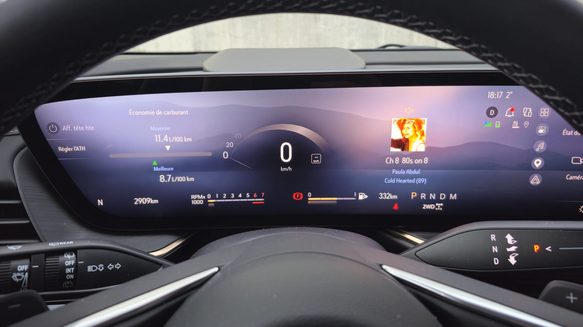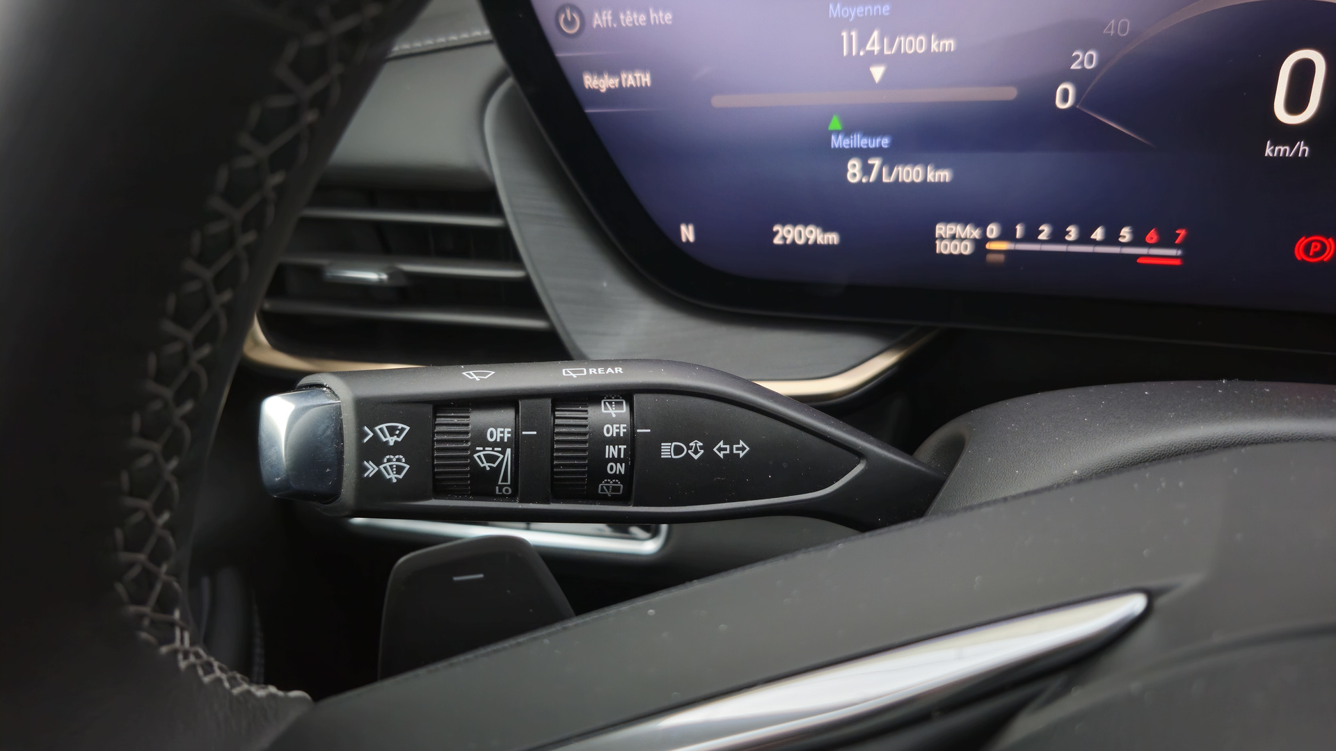 Il faut aussi souligner que si cette disposition du tableau de bord impressionne au premier coup d’œil, on constate rapidement à l’usage que certains éléments sont cachés par le volant, ce qui complique la recherche d’une position de conduite idéale.