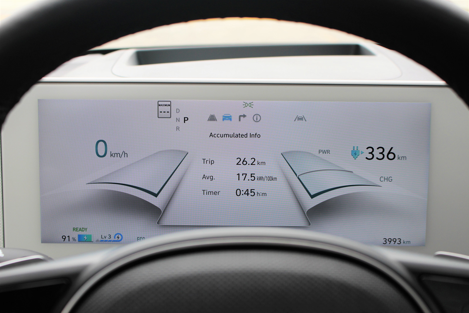 Lors de notre essai de la version à rouage intégral du Hyundai IONIQ 5 2022, nous avons observé une consommation d’énergie de 20,7 kWh/100 km, soit environ 2,3 Le/100 km.