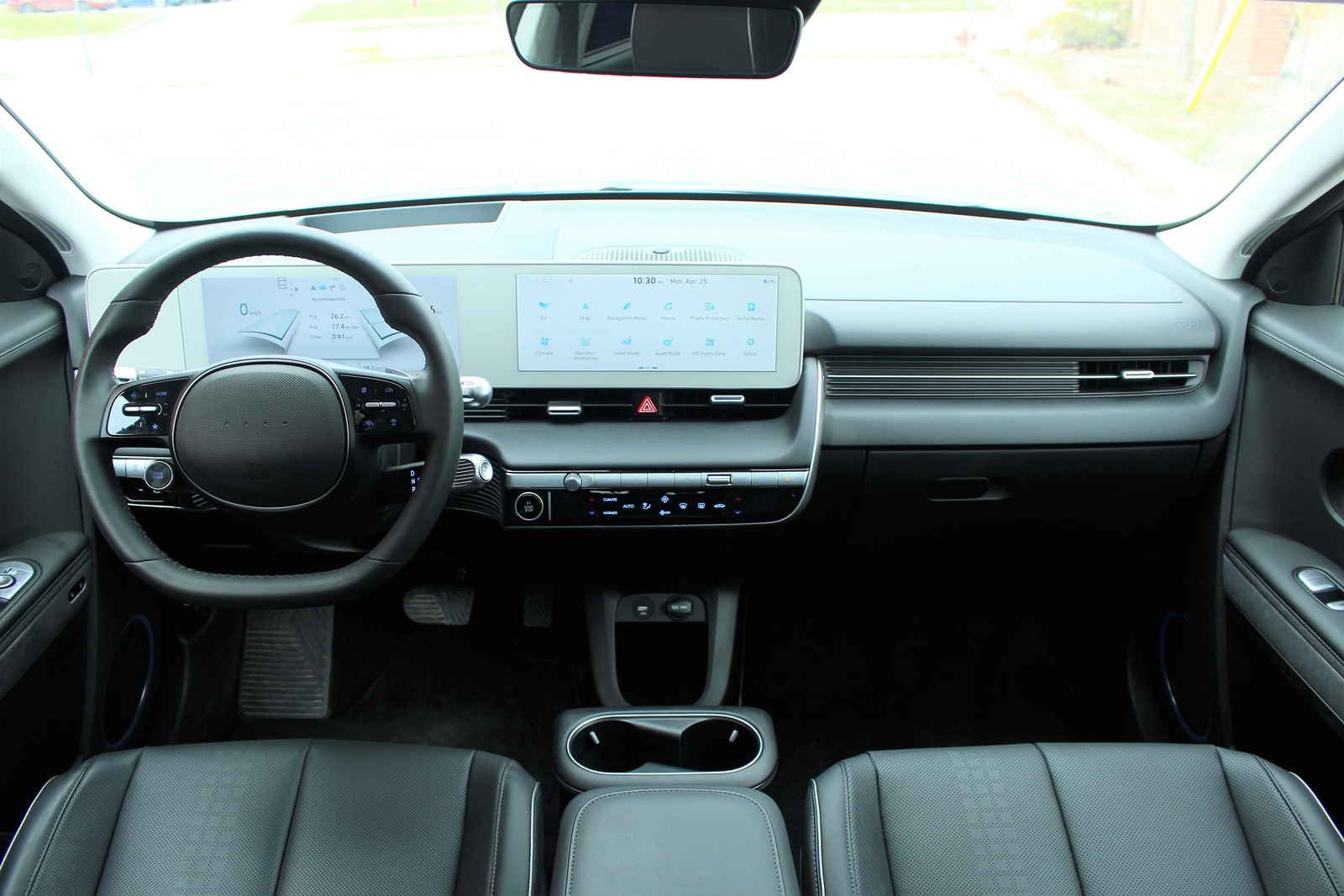 Sur la route, le IONIQ 5 affiche un bon comportement routier, aidé par son bas centre de gravité et sa plateforme qui nous semble très solide. On aimerait toutefois un diamètre de braquage plus étroit afin de faciliter les manœuvres de stationnement. Les performances de la version la plus chère sont évidemment intéressantes, alors que certaines personnes risquent de trouver les variantes de base drôlement moins dynamiques. Le Kona électrique est plus puissant que celles-ci avec ses 201 chevaux et son couple de 290 livres-pied, d’autant plus que son rouage à traction permettrait un meilleur contrôle en hiver que le système à roues motrices arrière du IONIQ 5. On peut conduire à une seule pédale, la récupération d’énergie étant assez forte pour ralentir et immobiliser le véhicule.