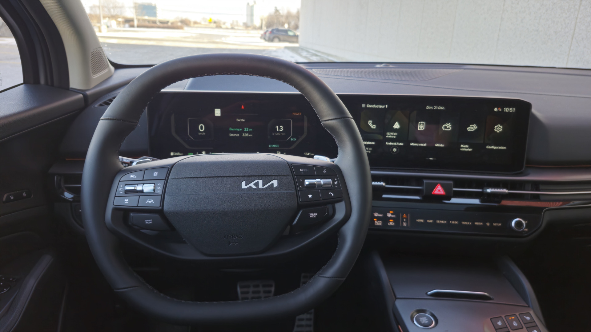 Comme dans les autres modèles hybrides de Kia et Hyundai, la présence d’une boite de vitesse automatique conventionnelle rend l’expérience de conduite plus proche de celle d’un véhicule à essence que celle des autres modèles hybrides du segment.