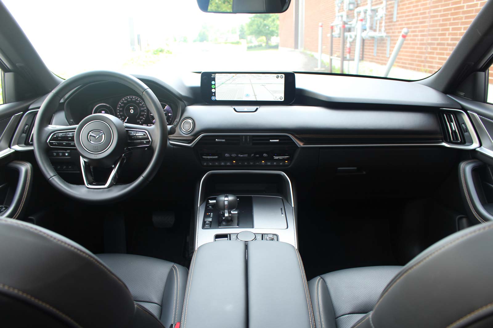 En contrepartie, le Mazda CX-90 PHEV 2024 a attiré son lot de compliments pour son design élancé et élégant, exhibant sa meilleure imitation d’un utilitaire vendu par une marque de luxe. Même réaction pour l’aménagement de l’habitacle, doté d’une finition soignée et d’un choix judicieux de matériaux. L’ergonomie des commandes est appréciable avec des commandes physiques pour le système de climatisation, même si l’on préférait des rhéostats pour régler la température. Le système multimédia fonctionne bien avec la molette multifonction sur la console centrale, sauf pour le système de navigation, alors qu’entrer une adresse de destination est un exercice long et pénible. L’écran de 10,25 pouces n’est pas tactile, mais celui de 12,3 pouces l’est pour utiliser Apple CarPlay et Android Auto plus facilement. Le hic, c’est que le gros écran n’est offert que dans la version Signature au sommet de la gamme. D’autre part, le volume de l’avertissement sonore pour boucler les ceintures de sécurité est inutilement élevé.