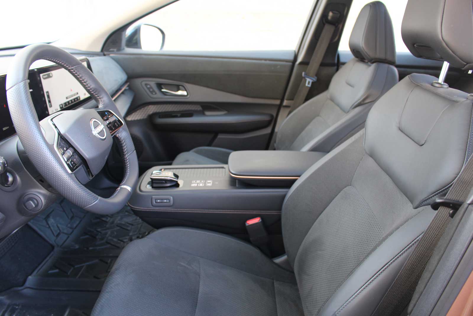 À l’instar de la carrosserie de l’ARIYA, le design épuré de l’habitacle est attrayant, alors que l’on apprécie des caractéristiques comme la console coulissante à commande électrique et, dans les versions plus chères, le compartiment de rangement à ouverture assistée à même la planche de bord, intégrant également un cabaret.