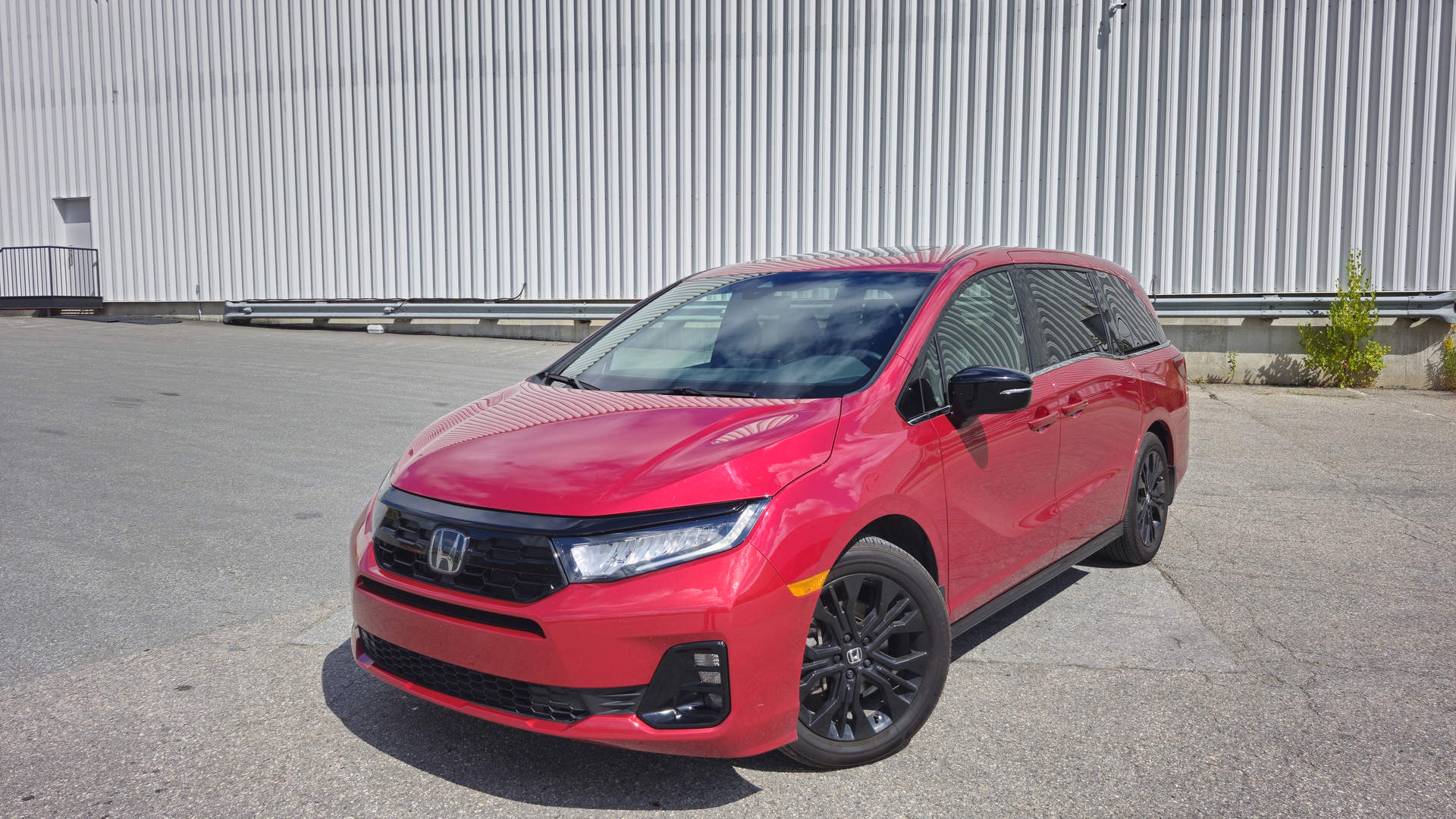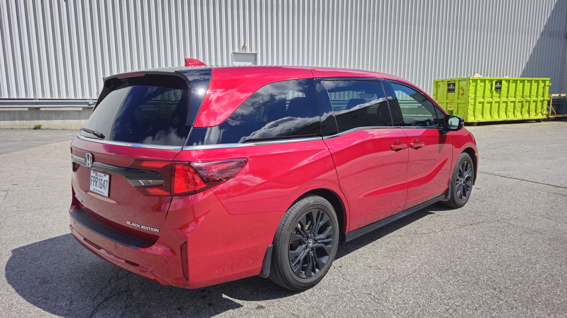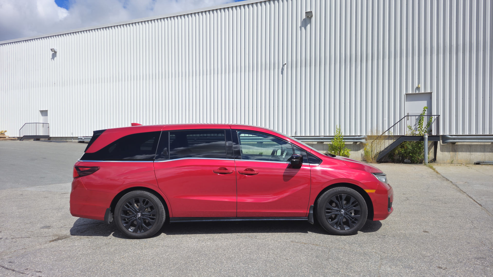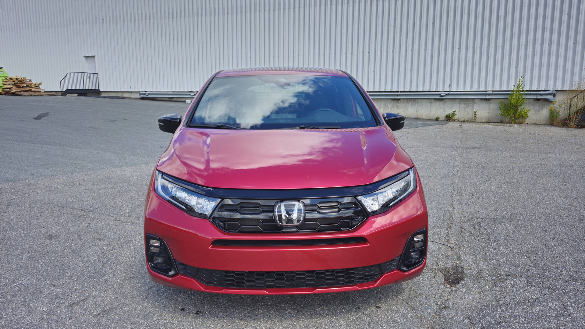 Puisqu’elle n’a pas beaucoup changé depuis 2018, il n’est pas surprenant que la Honda Odyssey commence à montrer son âge au niveau du style extérieur, notamment par rapport à ses rivales, qui ont toutes reçu au minimum une refonte en profondeur depuis. Bien sûr, cela n’enlève rien à l’Odyssey en soi, mais je préfère le design des minifourgonnettes Chrysler et Kia. La ligne de fenestration qui courbe vers le bas au niveau des ailes arrière n’aide pas l’Odyssey non plus, car elle fait paraître l’arrière plus lourd et plus imposant. Évidemment, personne n’achète ce type de véhicule pour son style, alors ça n’a pas tant d’importance. De plus, de légères retouches apportées pour l’année-modèle 2025 modernisent un tant soit peu ce modèle, et la combinaison de la peinture rouge avec la version Black Edition donnait à notre modèle d’essai un peu plus d’intérêt visuel qu’à certaines de ses rivales.