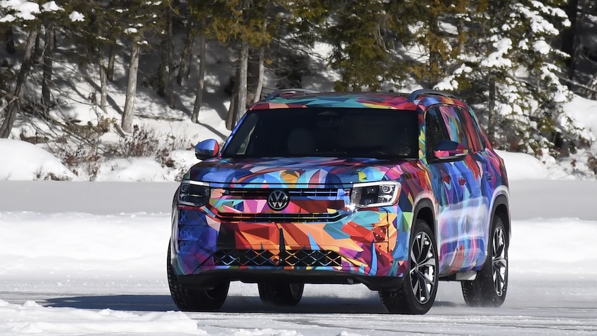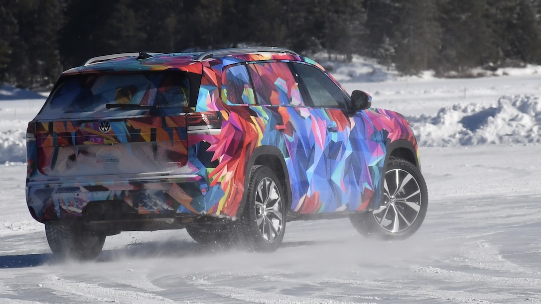 Notre essai du Volkswagen Atlas 2027 s’est résumé à un avant-midi d’exercices de contrôle et de dérapages sur un lac gelé.