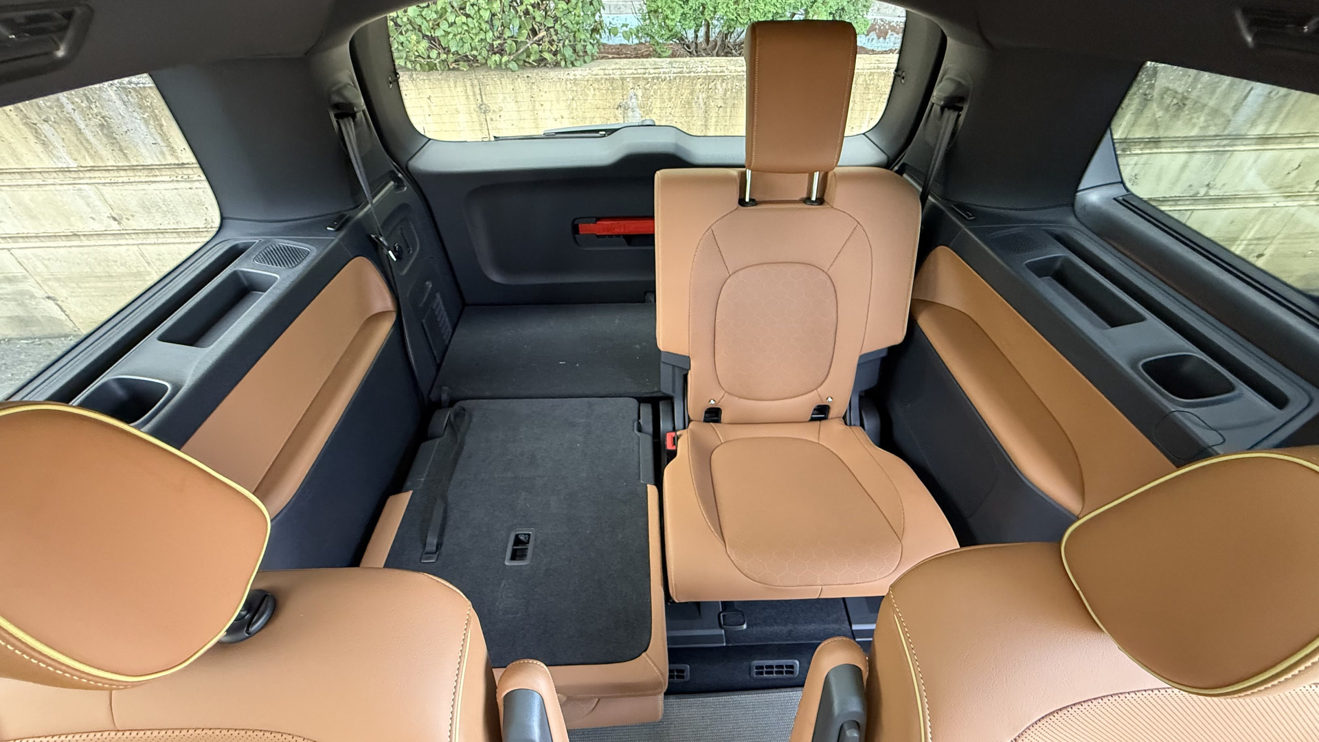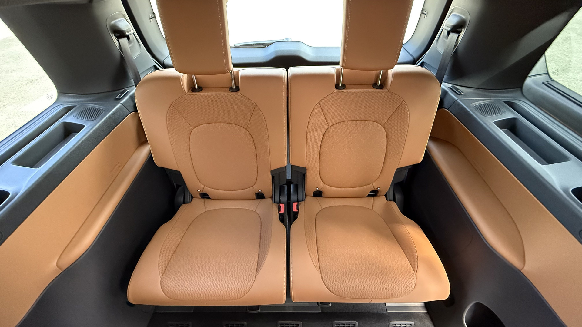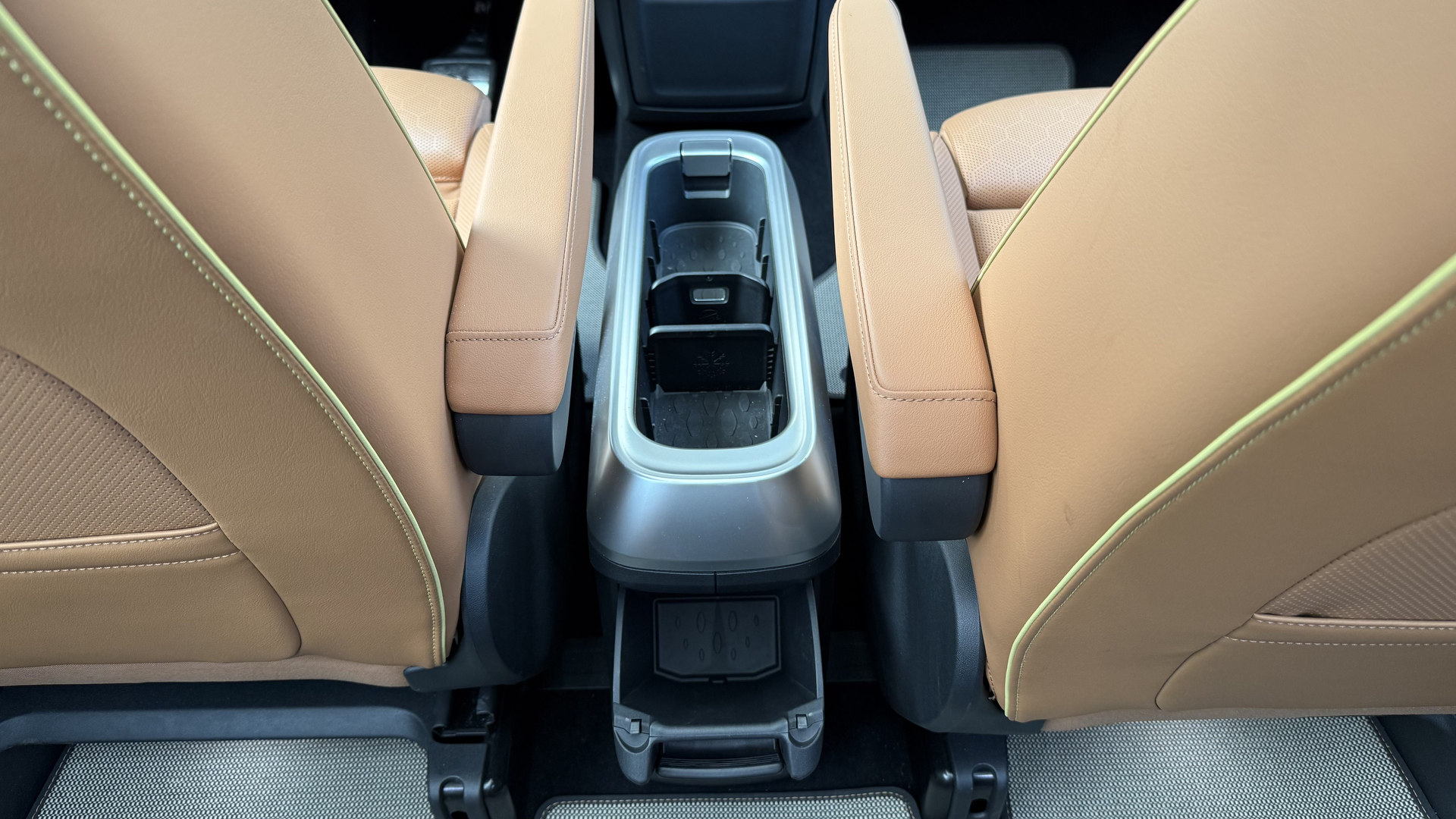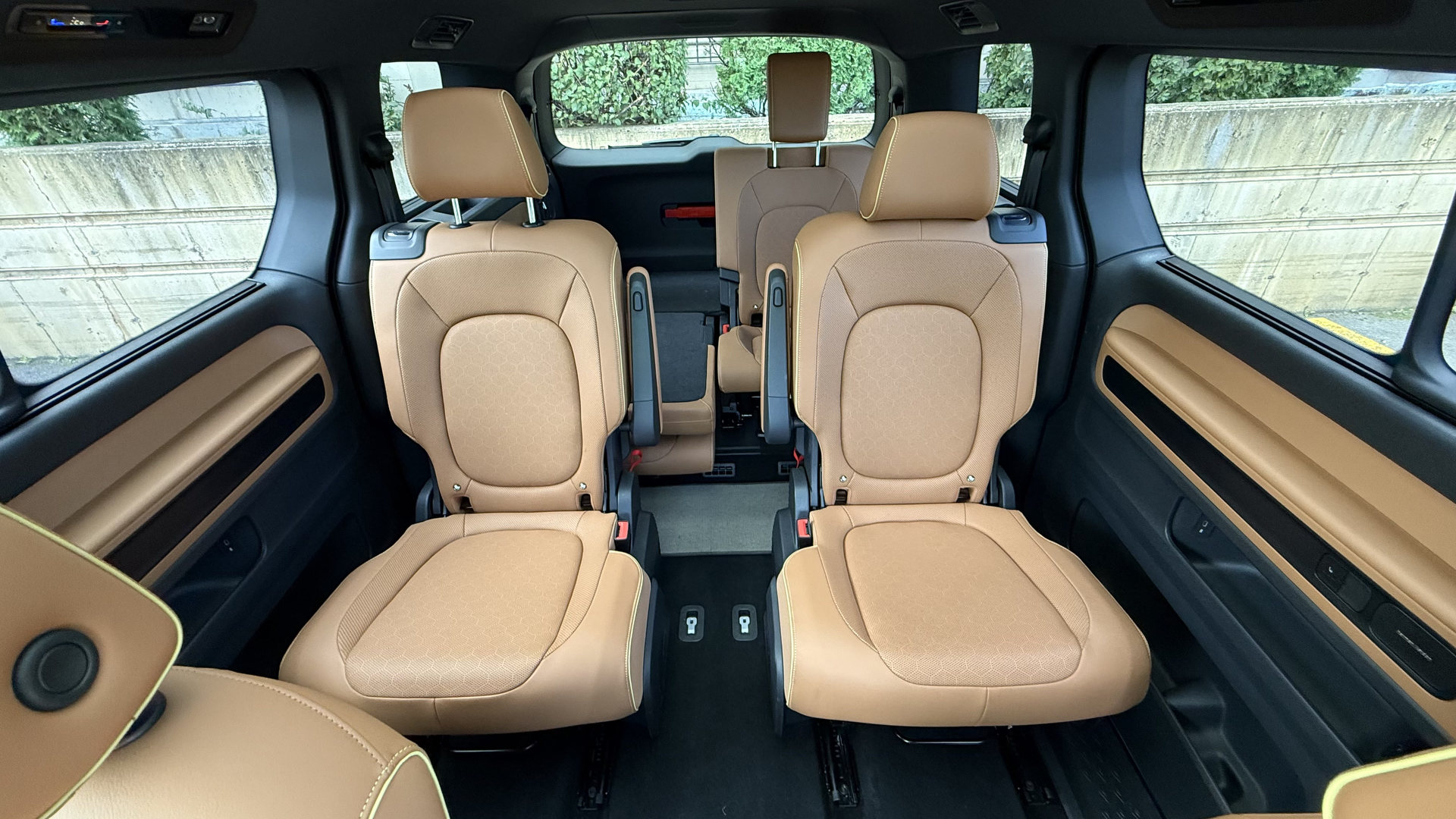 Mais les sièges de troisième rangée ne peuvent pas se replier dans le plancher à cause de la batterie et du moteur arrière. Il faut les enlever complètement pour maximiser l’espace. Pas idéal. Derrière ces sièges, il n’y a que 527 litres de coffre, ce qui est moyen. Mon adorée Toyota Sienna offre plus de 900 litres avec tous les sièges en place. Derrière la deuxième rangée ? Un généreux 2 138 litres, mais encore une fois, il faut retirer la troisième rangée.