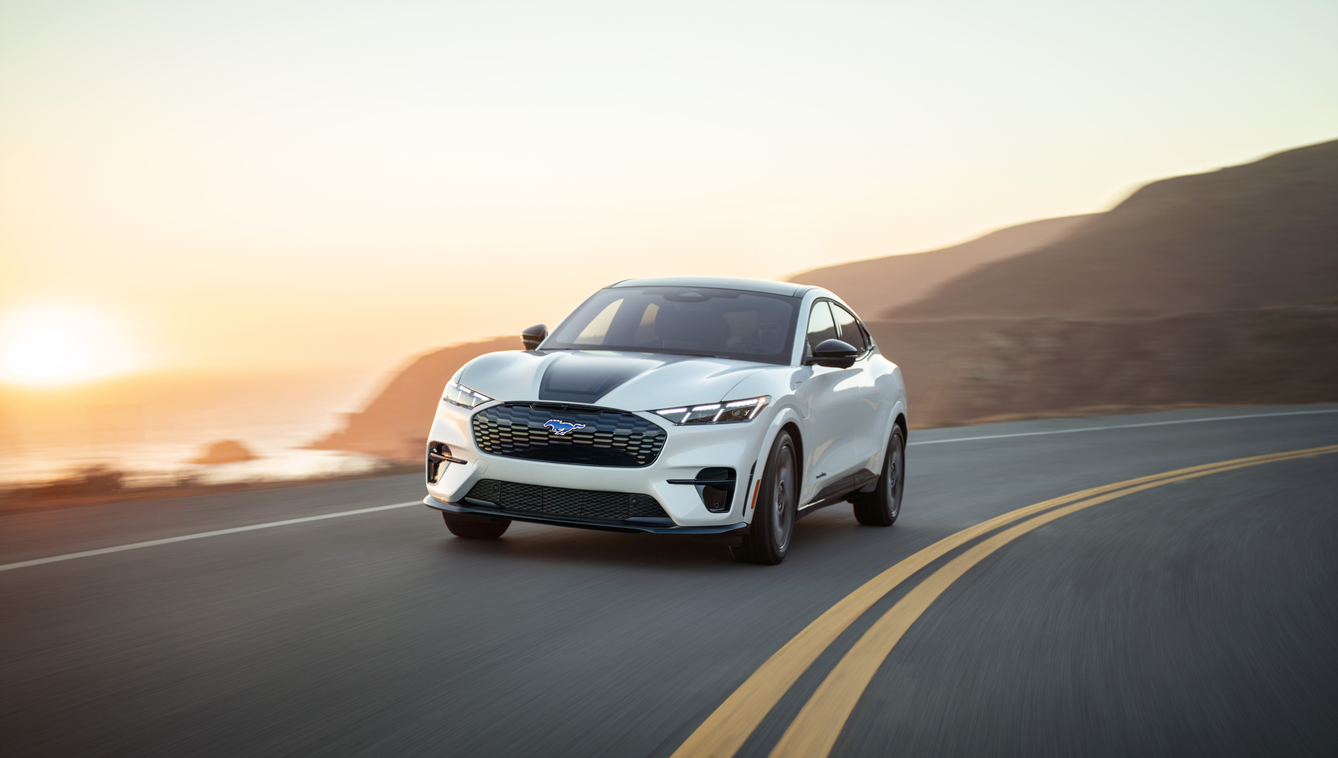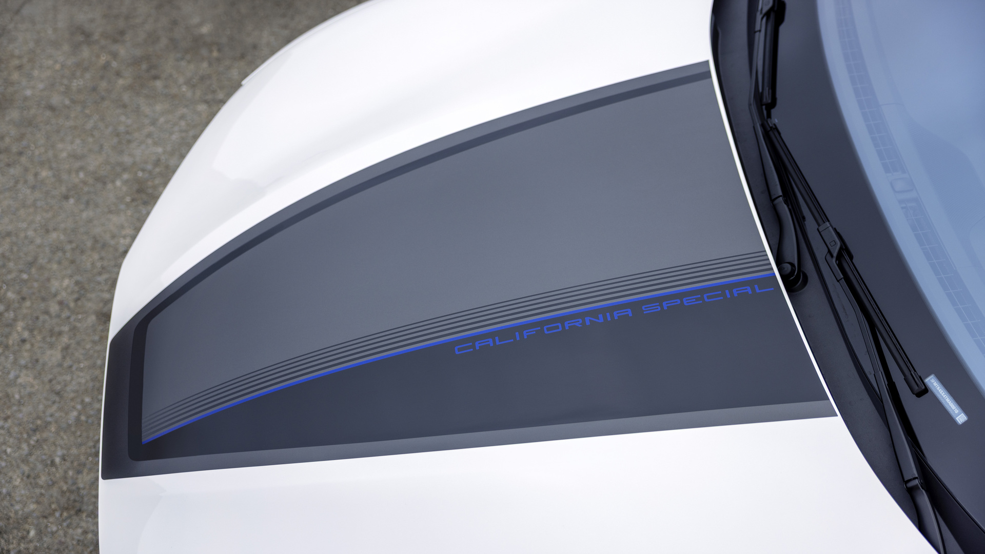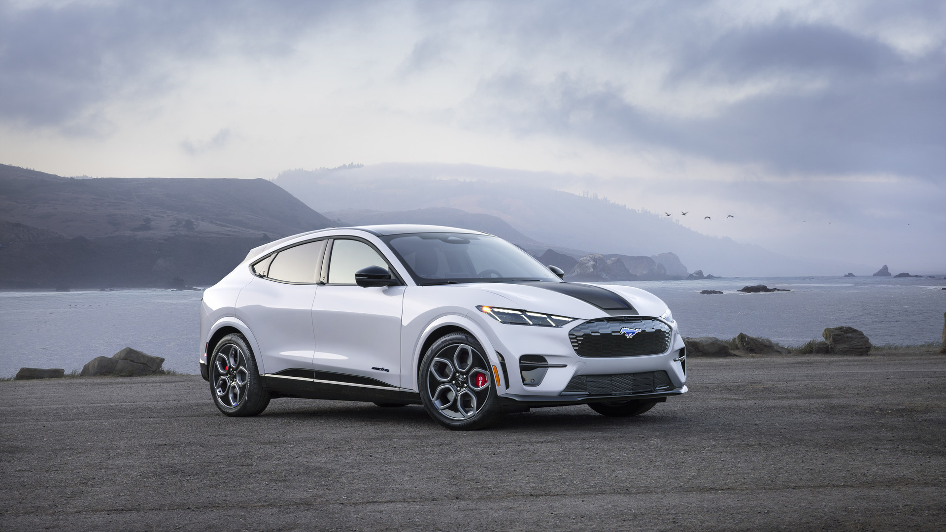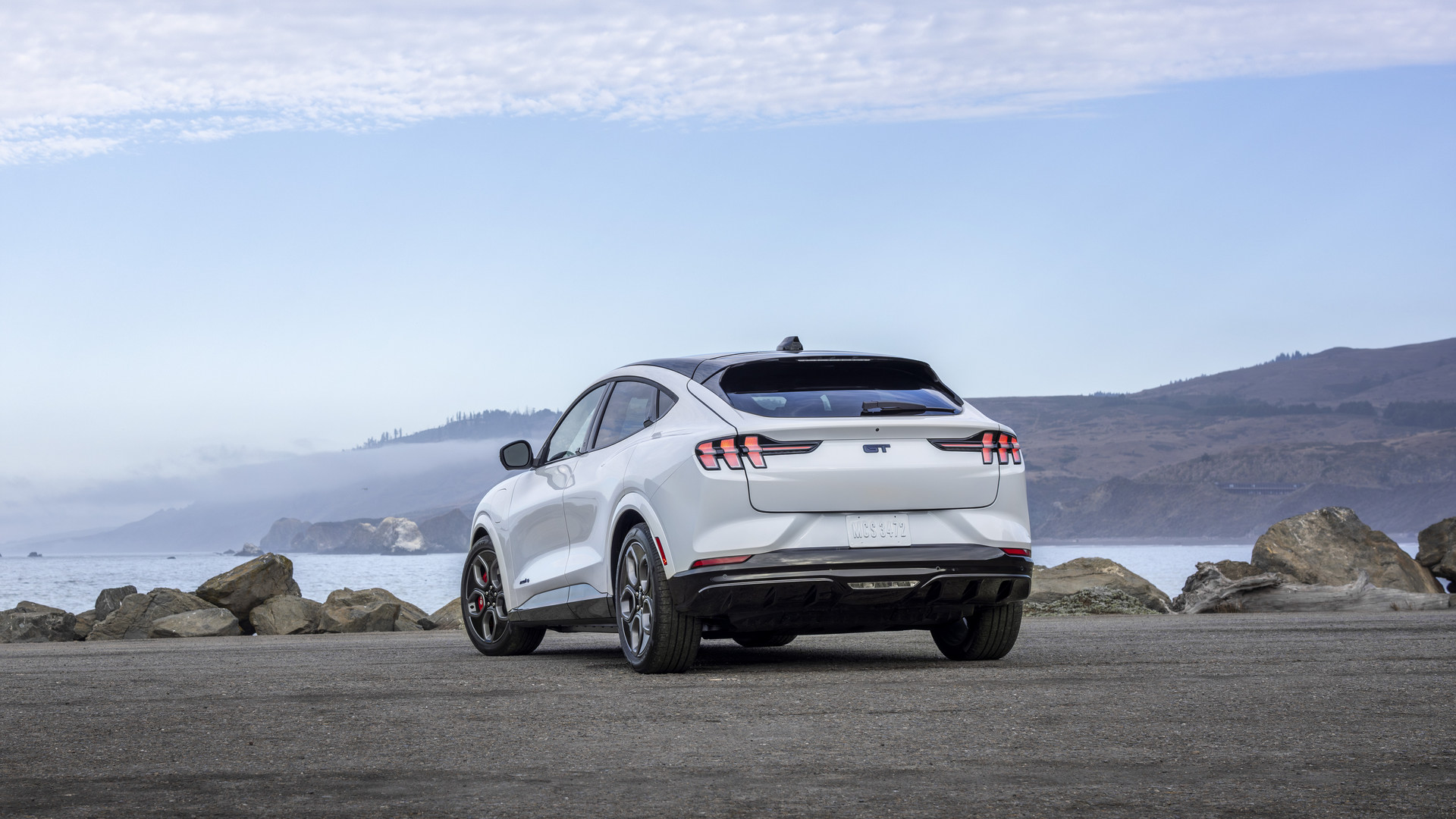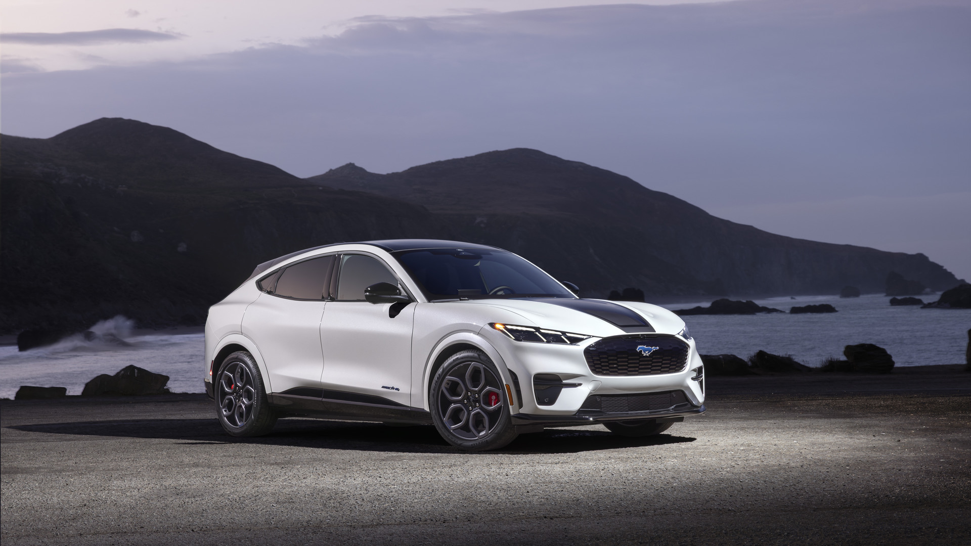 Basée sur la version GT, l’édition California Special du multisegment électrique ajoute un logo de cheval bleu illuminé à l’avant, des jantes en alliage grises de 20 pouces avec une inscription « GT/CS » bleue sur l’un des rayons, ainsi qu’un graphique gris, noir et bleu sur le capot inspiré de la côte californienne.