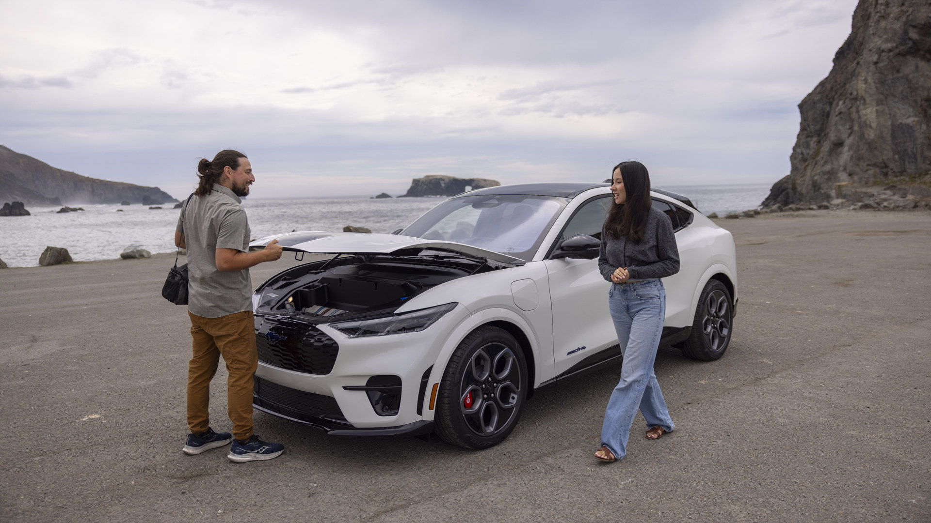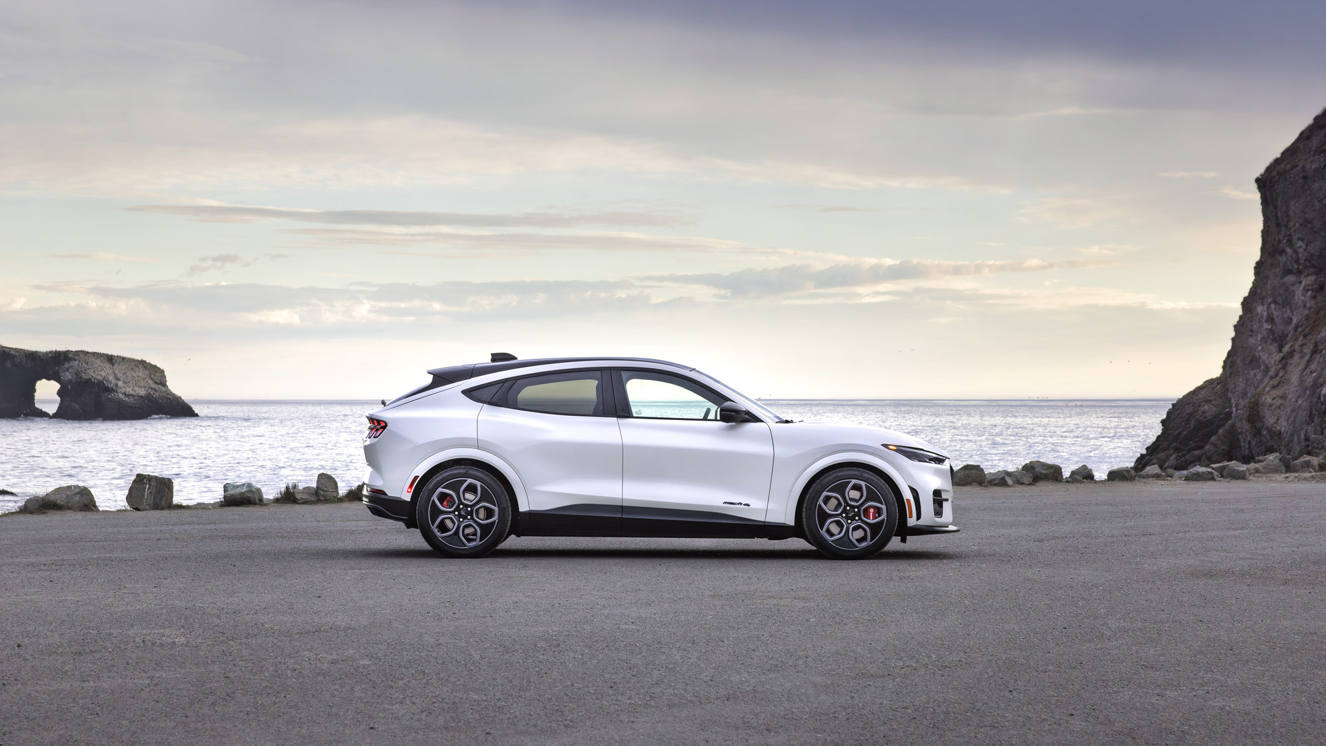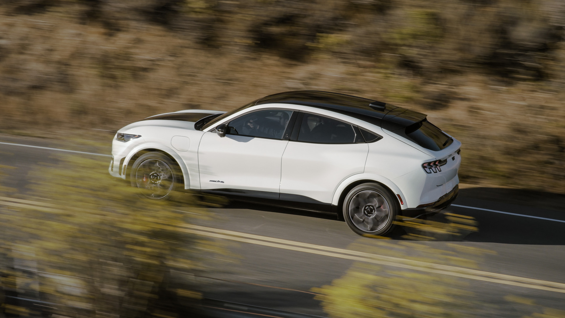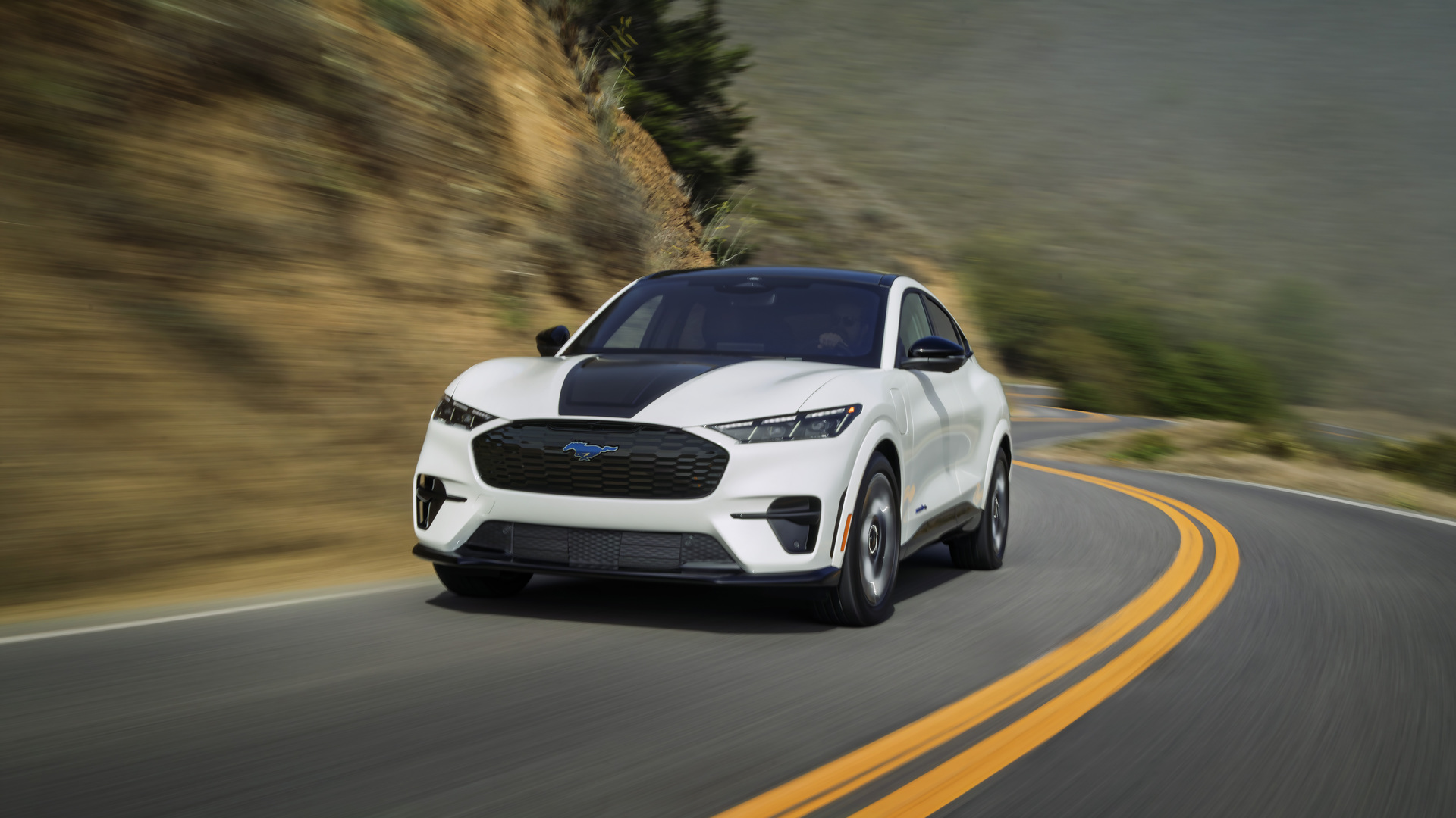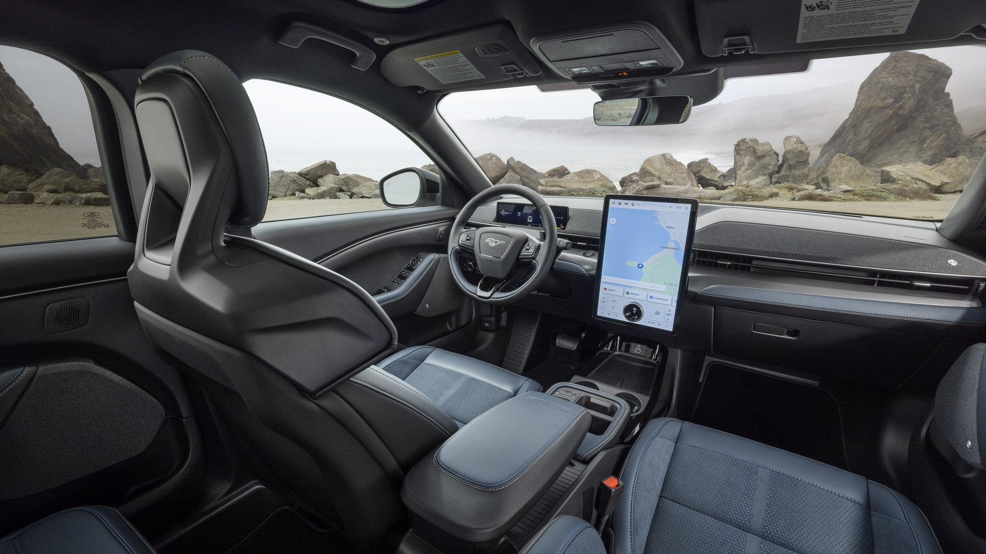 Basée sur la version GT, l’édition California Special du multisegment électrique ajoute un logo de cheval bleu illuminé à l’avant, des jantes en alliage grises de 20 pouces avec une inscription « GT/CS » bleue sur l’un des rayons, ainsi qu’un graphique gris, noir et bleu sur le capot inspiré de la côte californienne.