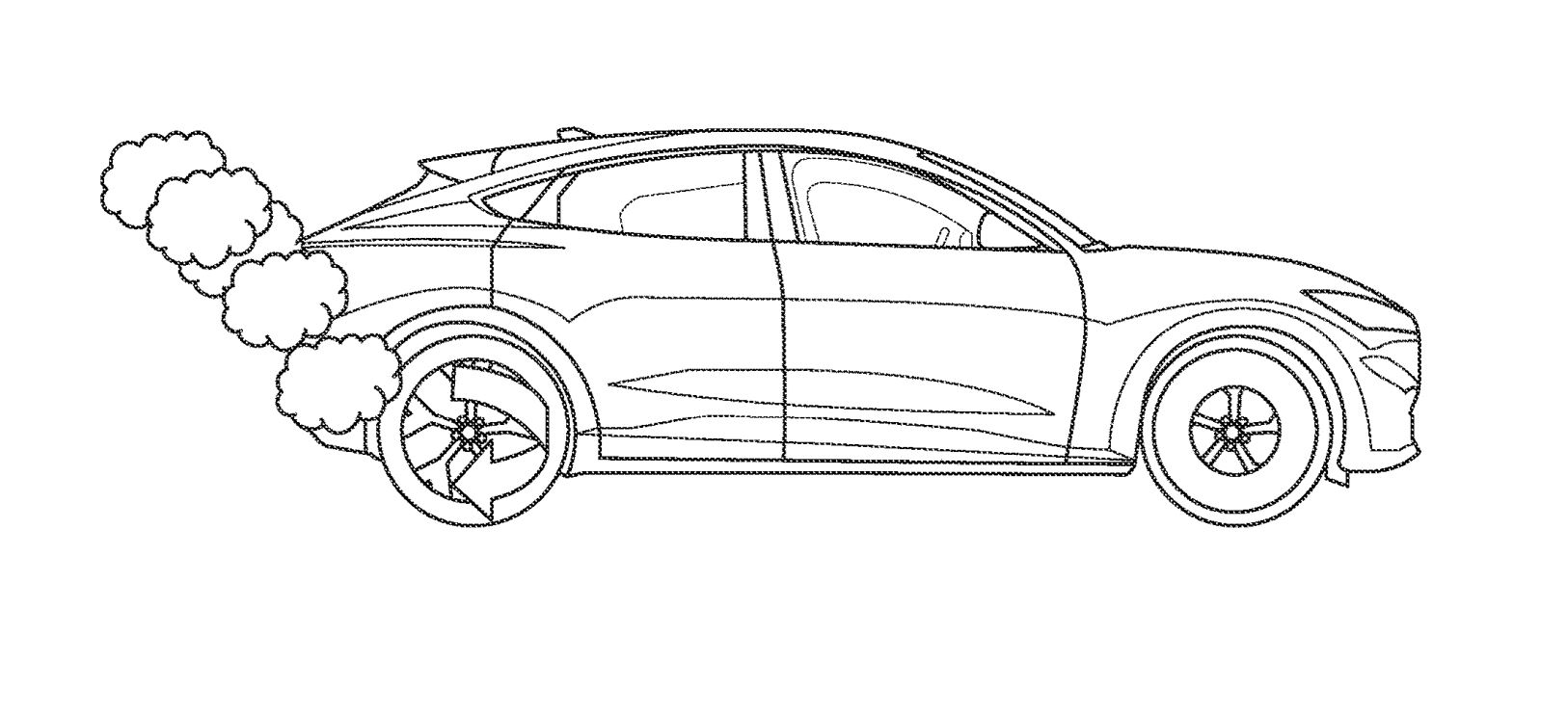 Selon la description contenue dans le dossier, une action spécifique sur les pédales d’accélérateur et de frein pourrait être utilisée pour faire passer la puissance de l’avant à l’arrière, ce qui permettrait de garder les quatre roues fumantes en même temps.