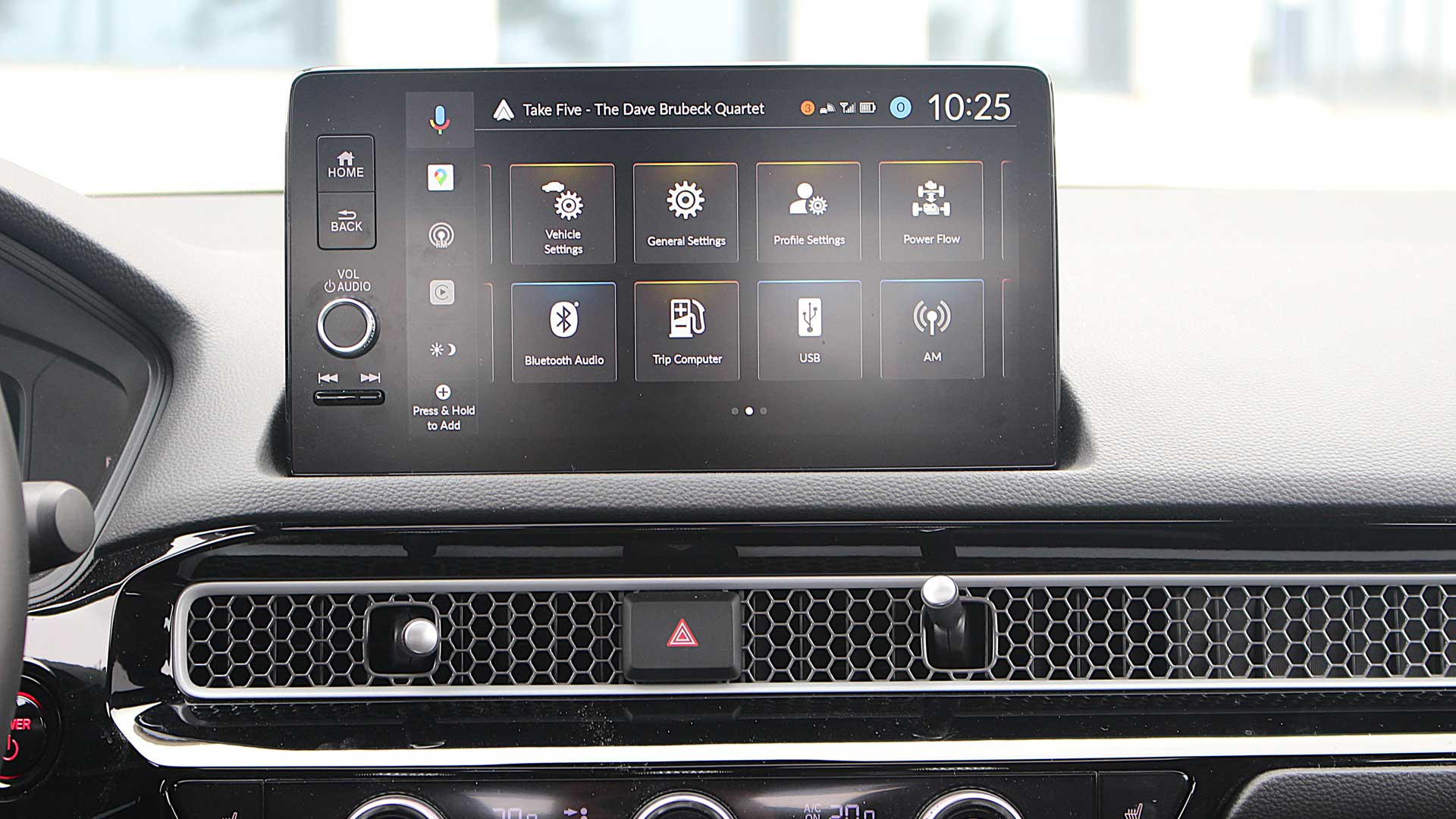 Le système multimédia de Honda est facile à utiliser, avec de grosses zones de boutons à l’écran ainsi que des boutons physiques à gauche de l’écran tactile, nous permettant de contrôler le volume et d’accéder rapidement au menu principal, même lorsque l’on a activé Apple CarPlay et Android Auto.