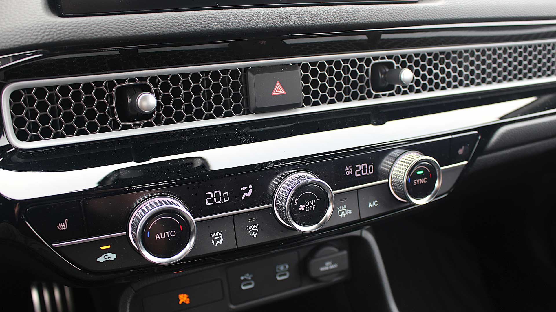 On souligne d’autres petits inconvénients dans l’habitacle. Il n’y a pas de bouches d’aération aux places arrière, autre que celles en dessous des sièges avant, alors les occupants à cet endroit ne seront peut-être pas à l’aise sans de l’air frais au visage. Ces mêmes occupants n’ont pas droit à des dossiers à inclinaison réglable. La planche de bord grillagée de la Civic est jolie, mais l’on se demande bien comment garder cet endroit propre au fil du temps, surtout des dégâts qui pourraient se ramasser derrière ladite grille.