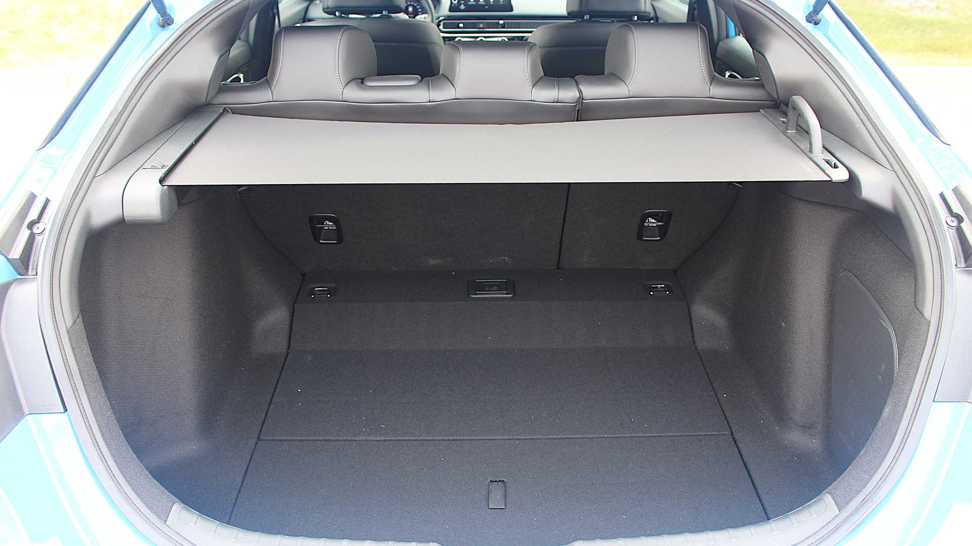 L’habitacle de la Honda Civic 2025 est spacieux, à l’avant comme à l’arrière, alors que le design intérieur procure une sensation d’espace encore plus grande. La surface vitrée est grande, permettant une bonne visibilité vers le monde extérieur. La Civic à hayon propose un coffre plus logeable (sur papier) avec les dossiers de sièges arrière relevés que ses rivales à cinq portes, et comprend un cache-bagages rétractable, alors pas besoin de le retirer pour transporter des objets de plus grande taille.