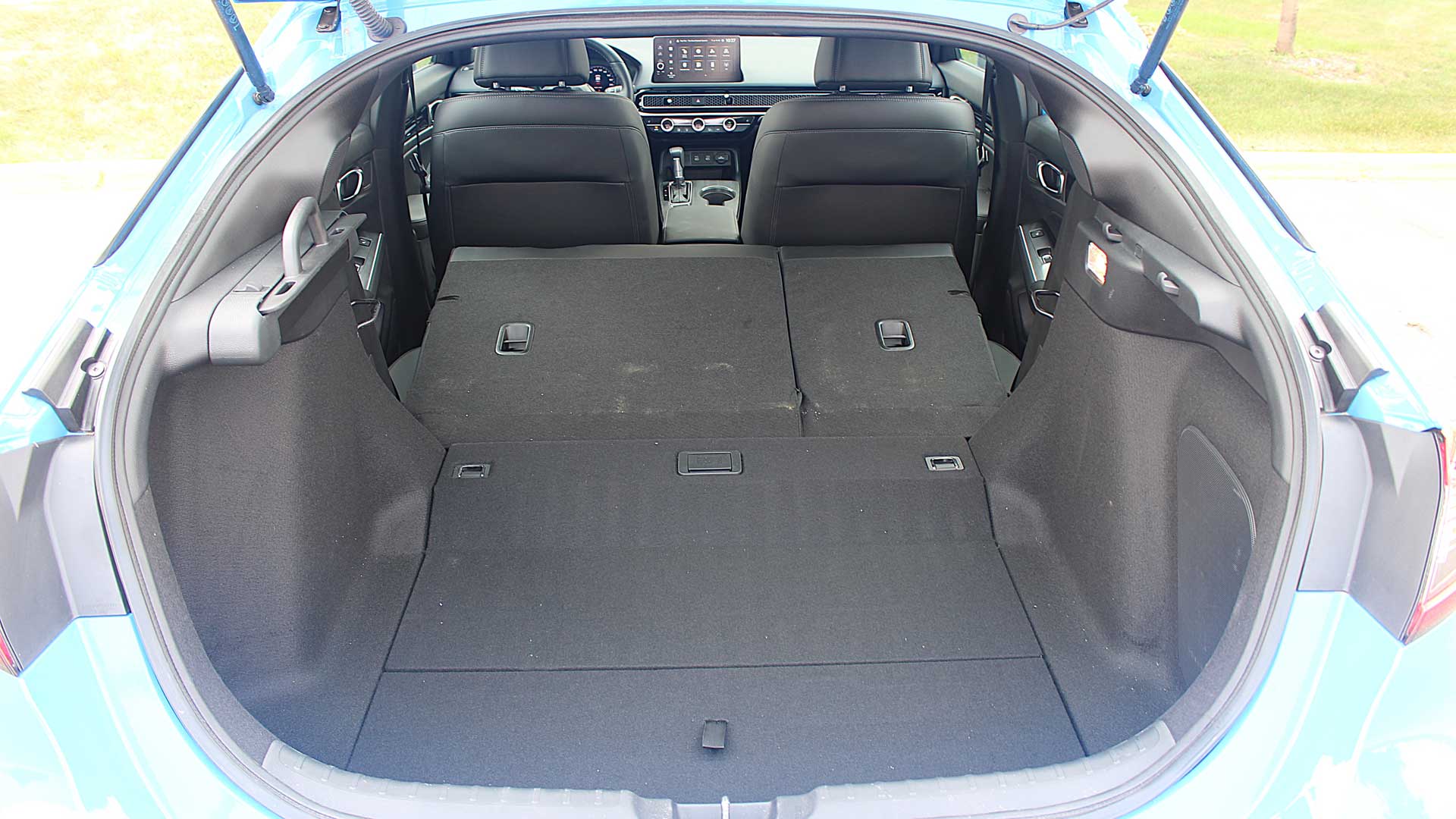 On souligne d’autres petits inconvénients dans l’habitacle. Il n’y a pas de bouches d’aération aux places arrière, autre que celles en dessous des sièges avant, alors les occupants à cet endroit ne seront peut-être pas à l’aise sans de l’air frais au visage. Ces mêmes occupants n’ont pas droit à des dossiers à inclinaison réglable. La planche de bord grillagée de la Civic est jolie, mais l’on se demande bien comment garder cet endroit propre au fil du temps, surtout des dégâts qui pourraient se ramasser derrière ladite grille.