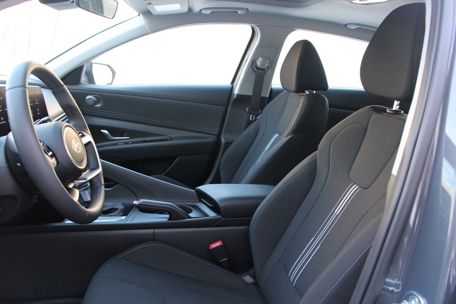 L’habitacle de l’Elantra est spacieux, surtout pour les gens assis à l’arrière qui profitent d’un grand dégagement pour les jambes et d’une entrée/sortie aisée. En revanche, sa ligne de toit est basse et certains occupants risquent de se sentir un peu claustrophobes. Et à cause de l’angle d’inclinaison du pare-brise, les piliers avant sont larges et obstruent la visibilité vers l’avant. Le coffre est d’une taille moyenne sans plus, et pourquoi n’y a-t-il pas une poignée à l’intérieur du couvercle afin l’éviter de se salir la main en hiver? Ça coûterait probablement 2 $ par voiture.