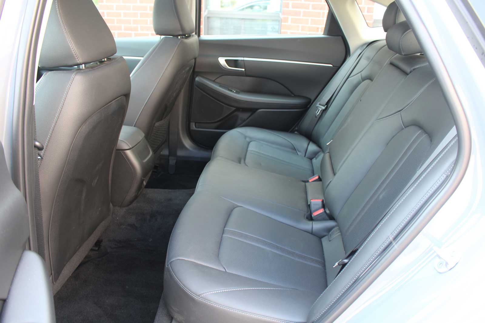 Comme on a pu le constater, la Hyundai Sonata 2024 est une excellente routière, proposant un habitacle confortable et silencieux. L’espace ne manque pas, sauf pour les jambes des occupants arrière, le plus faible parmi les berlines intermédiaires, et l’occupant assis au centre de la banquette se frottera probablement la tête au plafond à cause du coussin rembourré. Le coffre est volumineux, surpassé uniquement par celui de la Honda Accord.