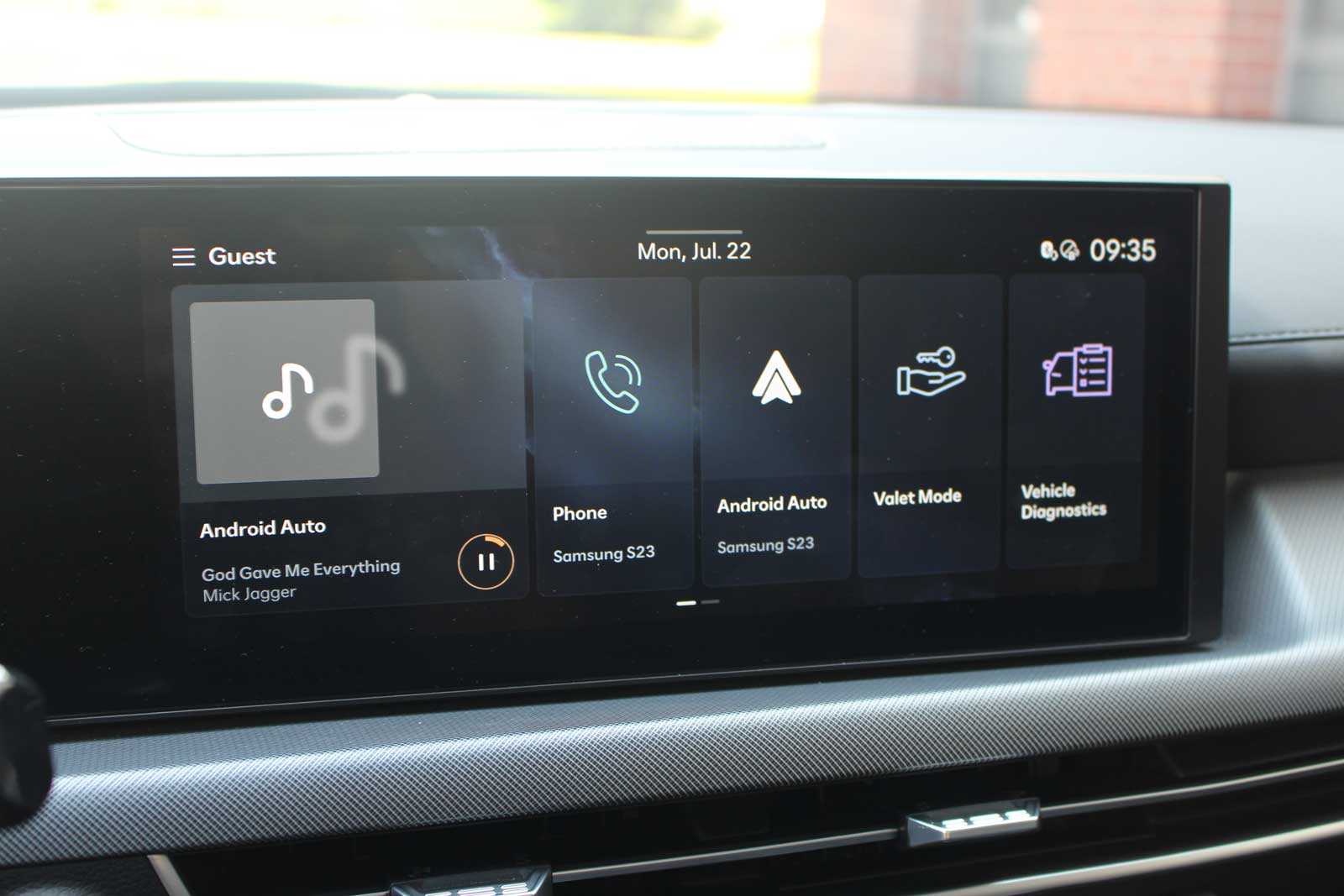 L’habitacle mis à jour profite maintenant d’un panneau courbé abritant l’instrumentation numérique de 12,3 pouces pour le conducteur et l’écran tactile de 12,3 pouces du système multimédia, la tendance du moment, et comme l’on retrouve dans les autres modèles de la marque. On retrouve aussi un affichage tête haute de 12 pouces, une chaîne audio Bose à 12 haut-parleurs, des mises à jour par Internet et, désormais, une intégration Apple CarPlay et Android Auto sans fil.