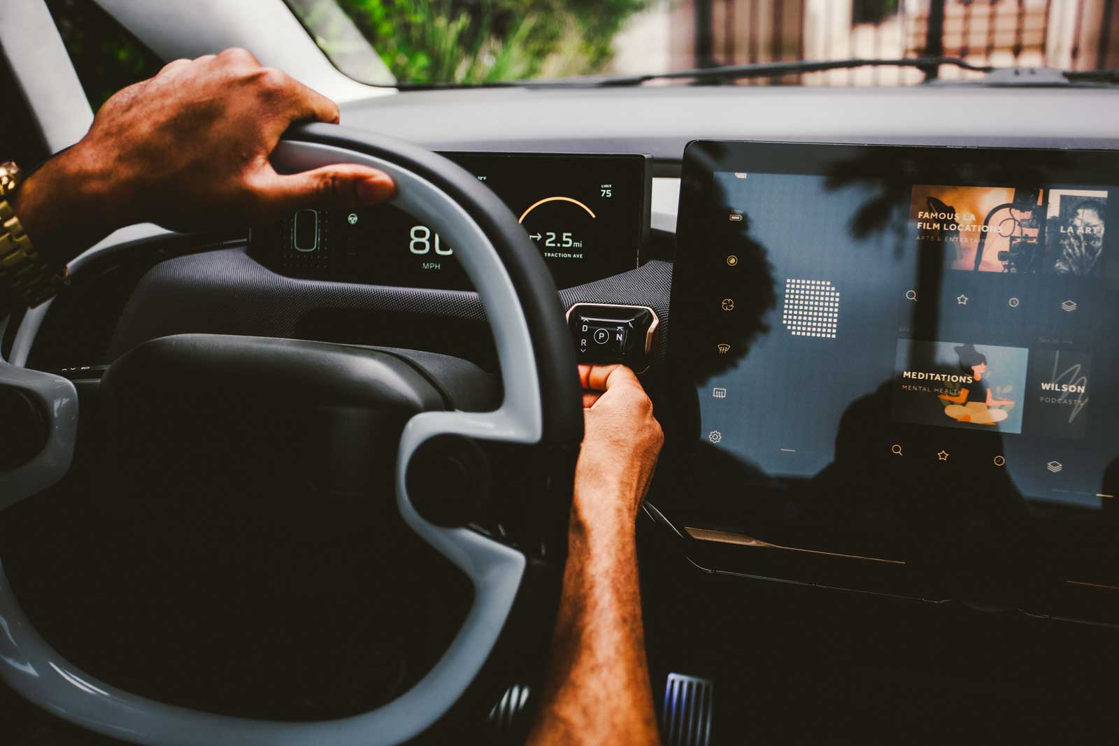 L’habitacle à cinq passagers est très lumineux grâce à un toit vitré panoramique de série, alors que l’aire de chargement de 1 218 litres comprend un système d’arrimage à verrouillage afin que les propriétaires puissent fabriquer des partitions et d’autres pièces avec une imprimante 3D, afin de configurer le coffre à leurs besoins. Toutefois, l’accent se trouve à l’avant, où le volant et le petit affichage numérique du conducteur sont flanqués de deux écrans tactiles de 15,6 pouces côte à côte. Celui au centre sert évidemment pour le système multimédia et la ventilation, alors que celui de droite est directement connecté à l’ordinateur embarqué.