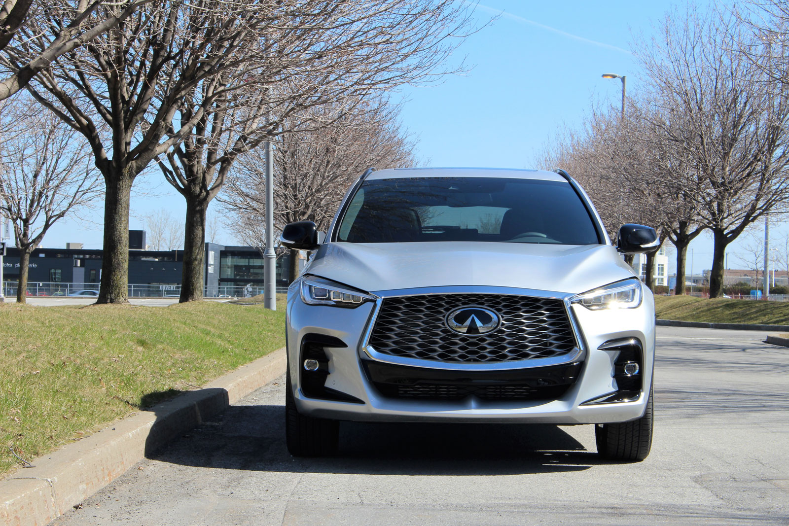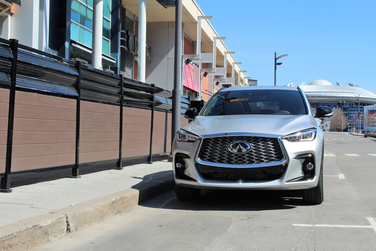 La qualité de roulement du QX55 impressionne, absorbant les imperfections de la route avec aplomb, bien que le véhicule soit chaussé de roues de 20 pouces entourés de pneus 255/45R20, et sans profiter d’une suspension dotée d’un amortissement réglable. C’est simple, et ça fonctionne à merveille. Quant à la direction à assistance variable, on note une petite différence dans la sensation lorsque le mode sport est activé, sans nécessairement rendre le multisegment plus dynamique.