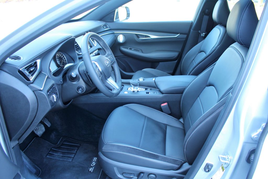Trois déclinaisons du QX55 sont disponibles, alors que le QX50 en propose cinq, dont les finitions PURE de base et AUTOGRAPH, la plus cossue. Dans l’habitacle, la finition est sans reproche, avec une exécution de ce que l’on s’attend de la marque japonaise après avoir conduit ses autres récents produits. Les versions LUXE et ESSENTIAL ProASSIST obtiennent des garnitures en aluminium ainsi que des sièges recouverts de similicuir ou de cuir véritable. La version SENSORY bénéficie de boiseries à pores ouverts et une sellerie de cuir semi-aniline.
