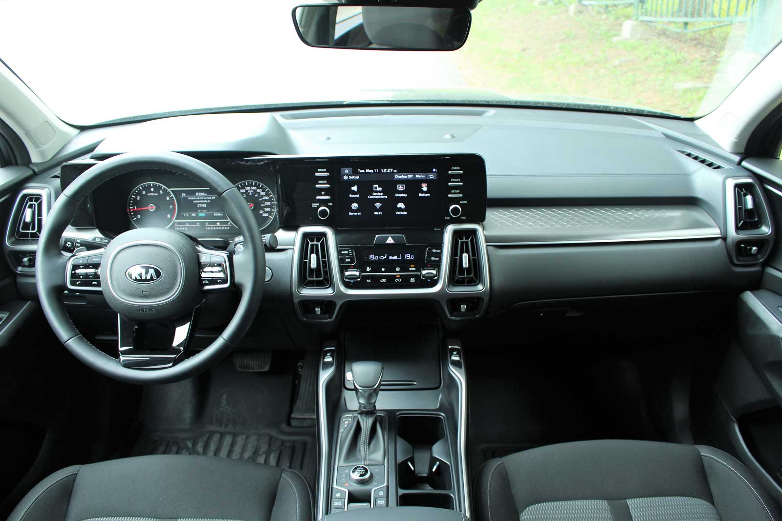 Le design intérieur du Kia Sorento 2021 est intéressant, avec ses bouches d’aération carrées, son écran multimédia flottant et ses garnitures satinées qui brisent la monotonie de l’aménagement noir. La qualité des matériaux n’est pas à la hauteur de celle retrouvée dans le Telluride qui, il faut l’avouer, coûte plus cher. On déplore quelques mesures visant à réduire les coûts de production, comme l’absence d’une fonction monotouche pour descendre et remonter les fenêtres autres que celle du conducteur, et ce, même dans la version X-Line coûtant quelque 40 000 $. Pour cette commodité, il faut passer aux versions EX+ et SX. En revanche, même les occupants de la troisième rangée peuvent régler l’intensité de la ventilation tout en profitant de porte-gobelets et de prises USB.