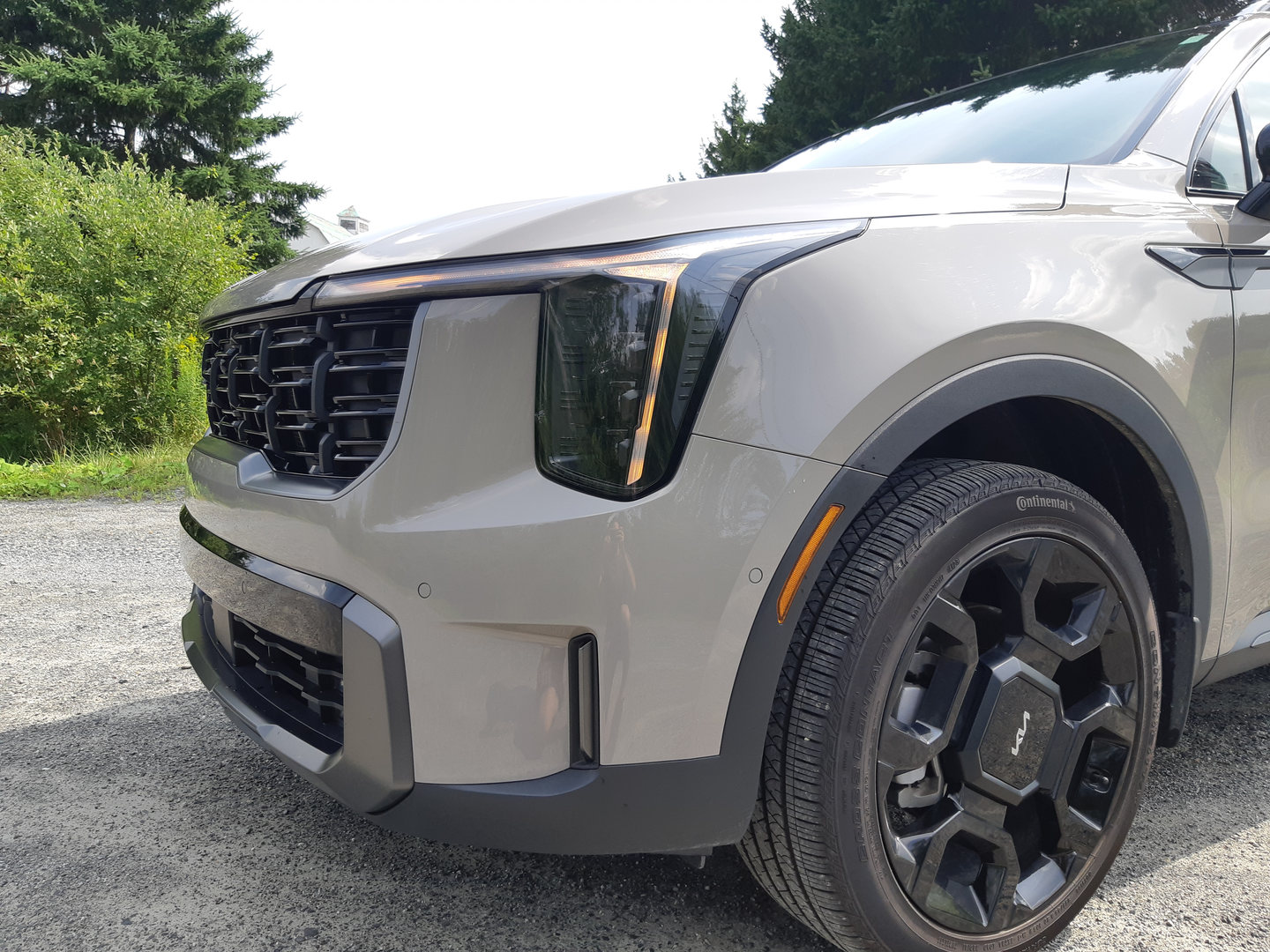 Le Kia Sorento 2024 affiche un air modernisé et un peu plus dynamique qu’avant, surtout dans les nouvelles versions X-Line et X-Pro, qui remplacent le chrome par du noir brillant pour attirer les acheteurs voulant un style un peu plus « aventurier ».