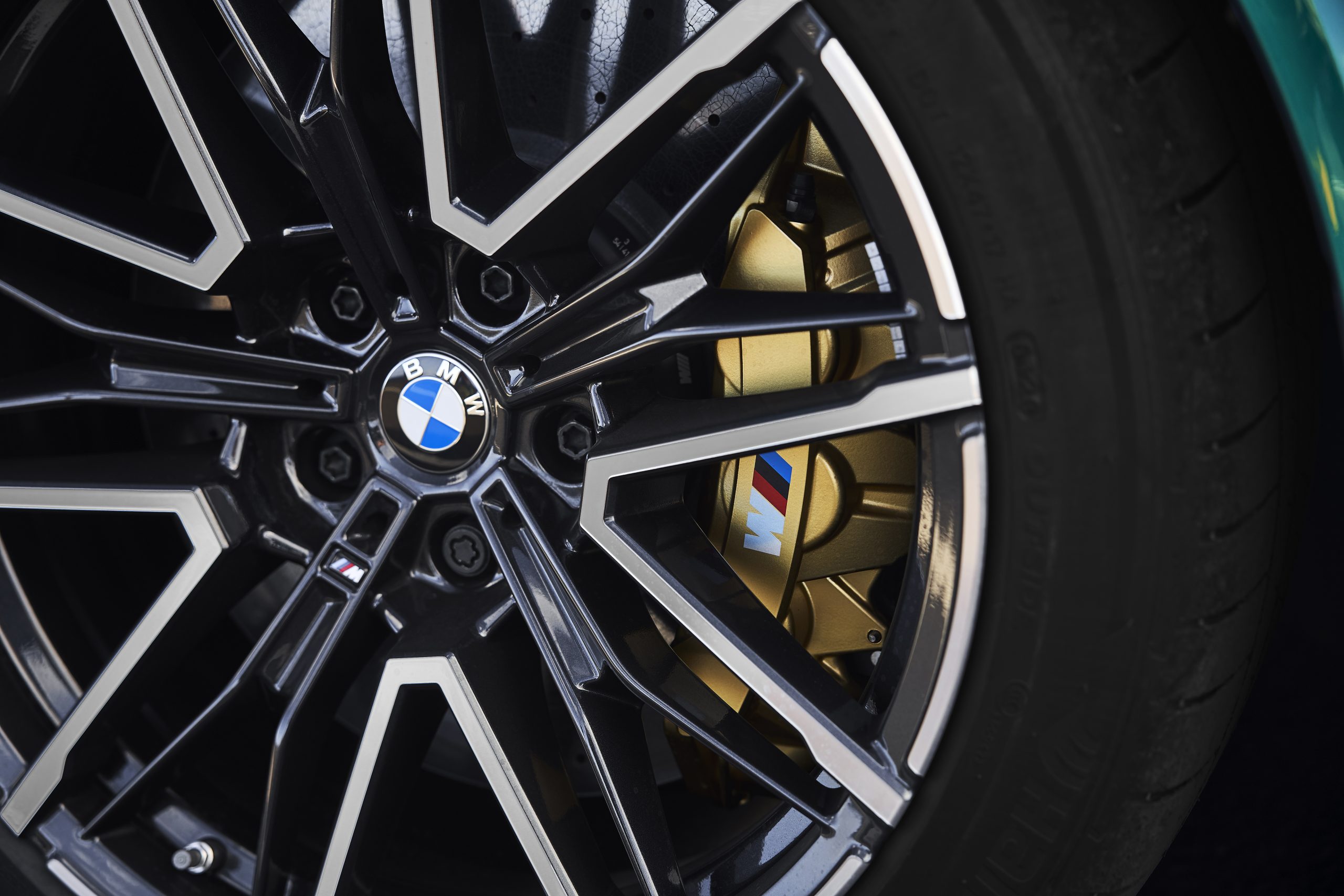 À l’avant, les ouvertures pratiquées plus bas dans le bouclier contribuent aussi à refroidir le compartiment moteur au maximum. On remarque tout de même que les ailes avant et arrière ont cru quelque peu pour mieux accueillir les pneumatiques élargis, tandis que les freins à disques sont immenses derrière les jantes surdimensionnées de 20 et 21 po (avant et arrière) de la berline. Règle générale, la nouvelle M5 est assez sobre à l’extérieur.