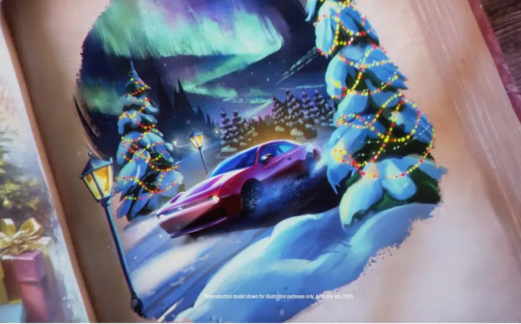 Les petits caractères contiennent le détail crucial suivant : « Modèle de préproduction montré à des fins d’illustration uniquement. Disponible fin 2024 ».