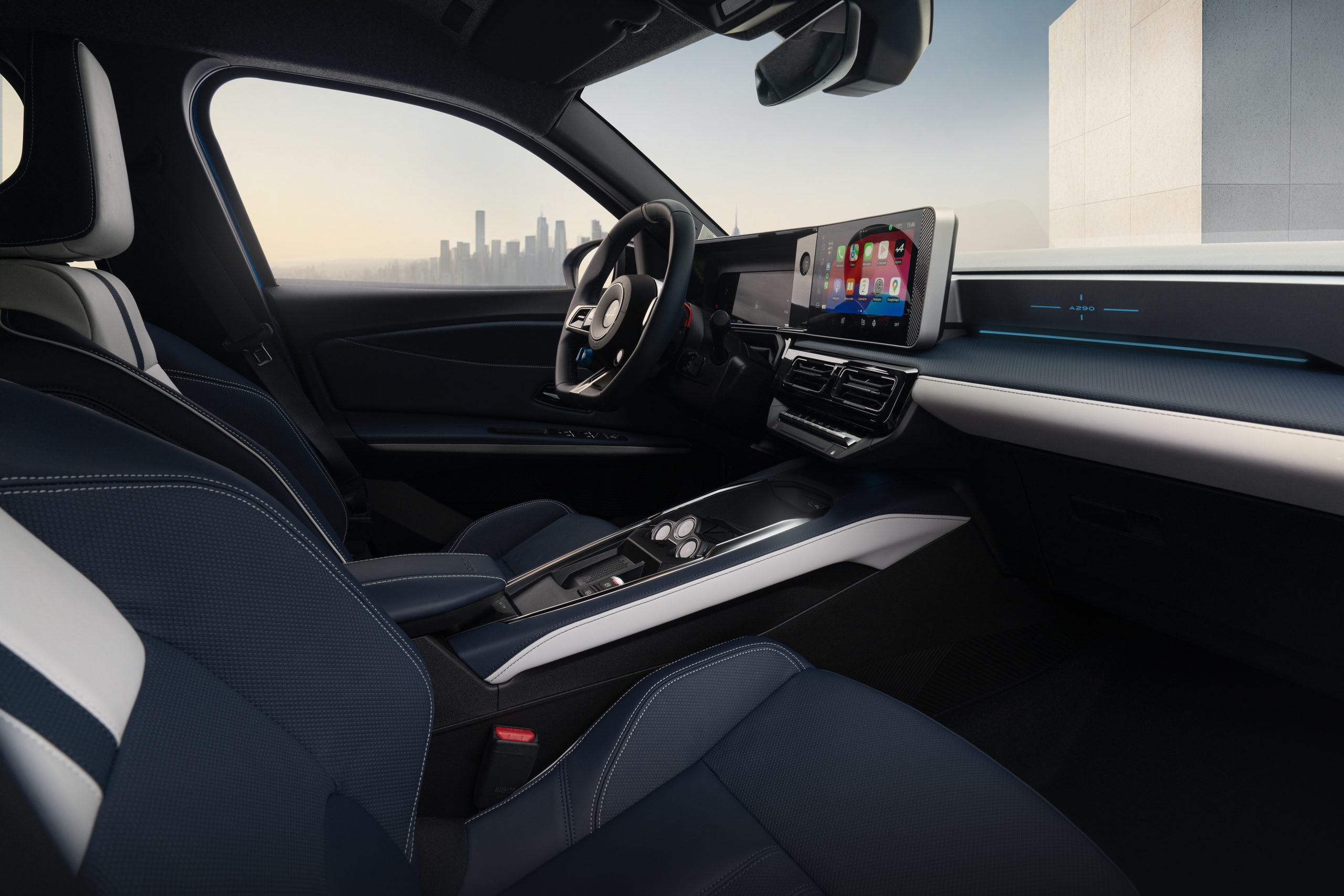 À l’intérieur, la planche de bord est bien entendu basée sur celle de la Renault 5 E-Tech, quoique les sorciers de l’aile sportive aient trouvé le moyen de transformer l’ambiance à la sauce Alpine avec un volant à base aplatie, des sièges plus enveloppants et une série de boutons pour le contrôle de la transmission.