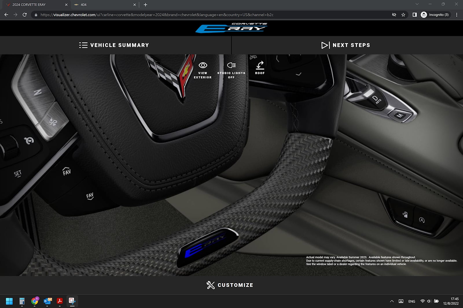 Cela pourrait être considéré comme une erreur, mais à quelques semaines de l’année 2023, et compte tenu de la nature changeante du « marketing », nous sommes presque sûrs que le configurateur de la Chevrolet Corvette E-Ray 2024 mis en ligne pendant quelques heures n’est pas une erreur.