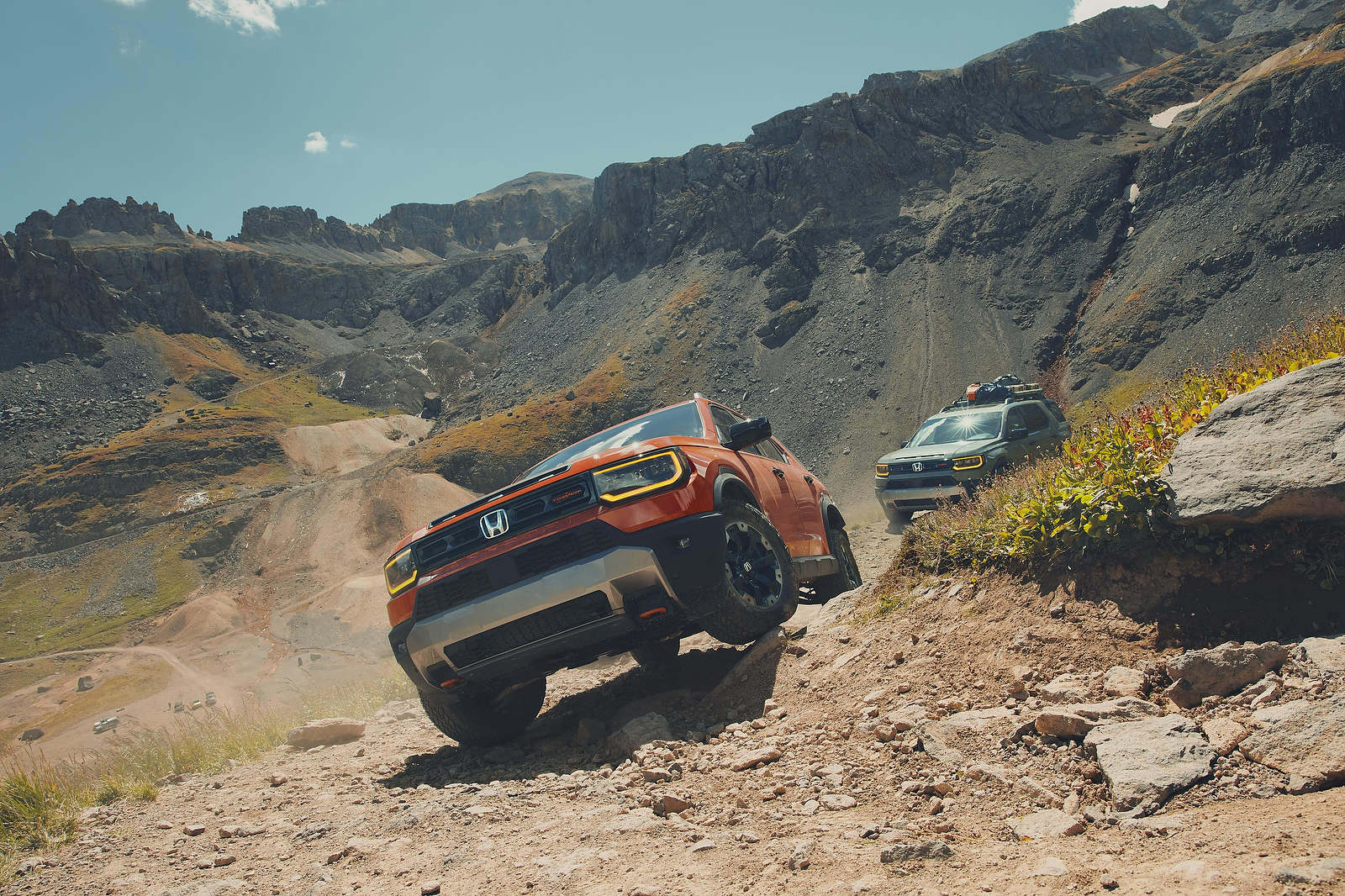 Chaque modèle TrailSport intègre de l’équipement amélioré pour le tout-terrain, notamment une suspension dédiée, des pneus toutes conditions, des plaques de protection en acier renforcé et des crochets de remorquage robustes. La version TrailSport Touring introduit le système TrailWatch de Honda, qui utilise des caméras extérieures pour aider le conducteur à repérer les obstacles et à mieux positionner les roues sur les sentiers.