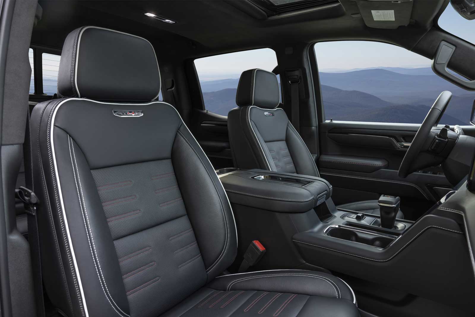 L’habitacle de la version AT4X obtient des sièges en cuir noir avec des passepoils blancs et des surpiqûres rouges, des plaquages de bois foncé ainsi que la fonction de massage, les sièges à 16 réglages électriques et le pavillon de toit du Denali Ultimate. Sous le capot, la seule motorisation disponible est le V8 de 6,2 L avec 420 chevaux. GMC dispose désormais d’un camion offrant de sérieuses capacités hors route, comme chez la concurrence.