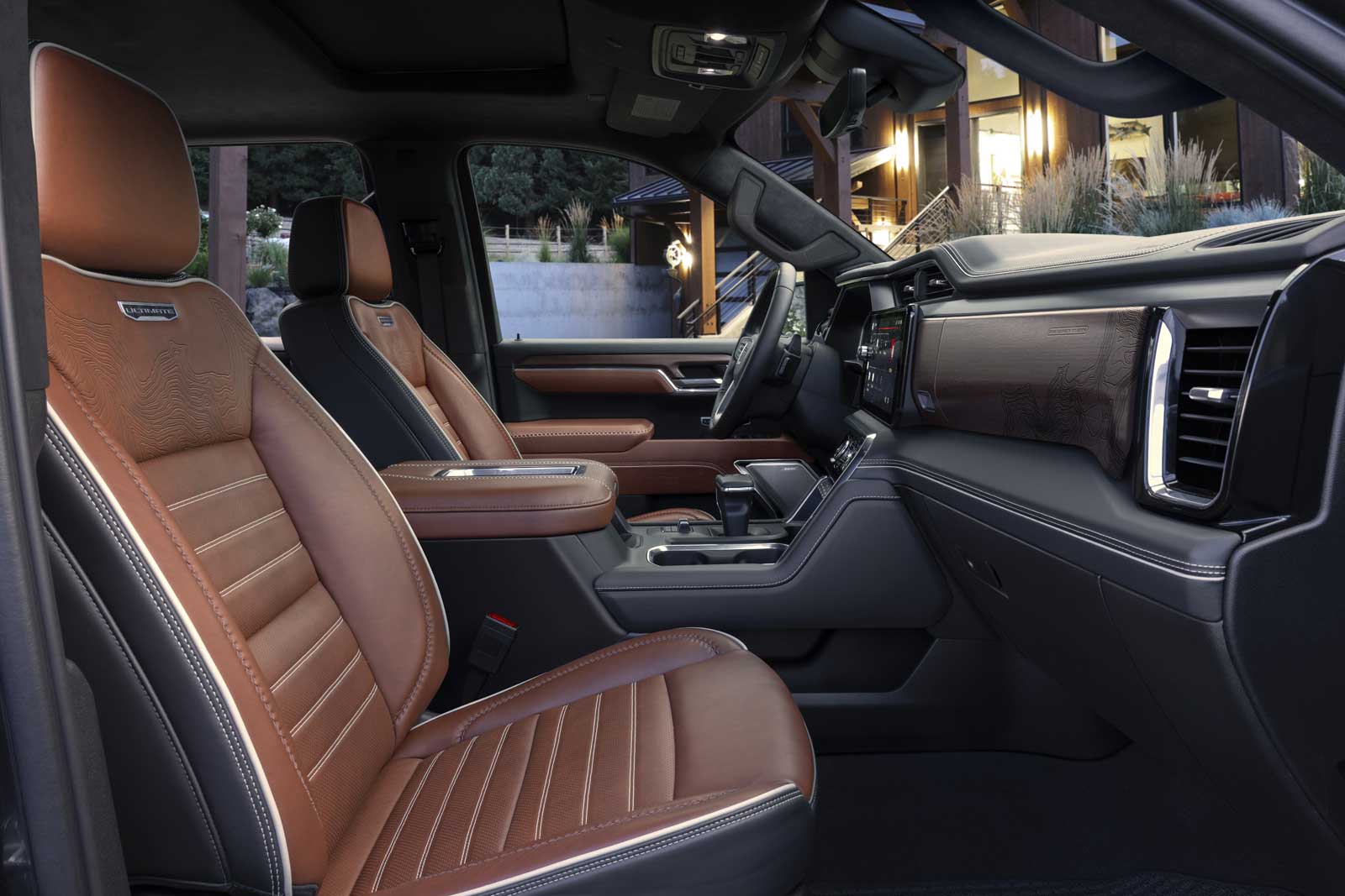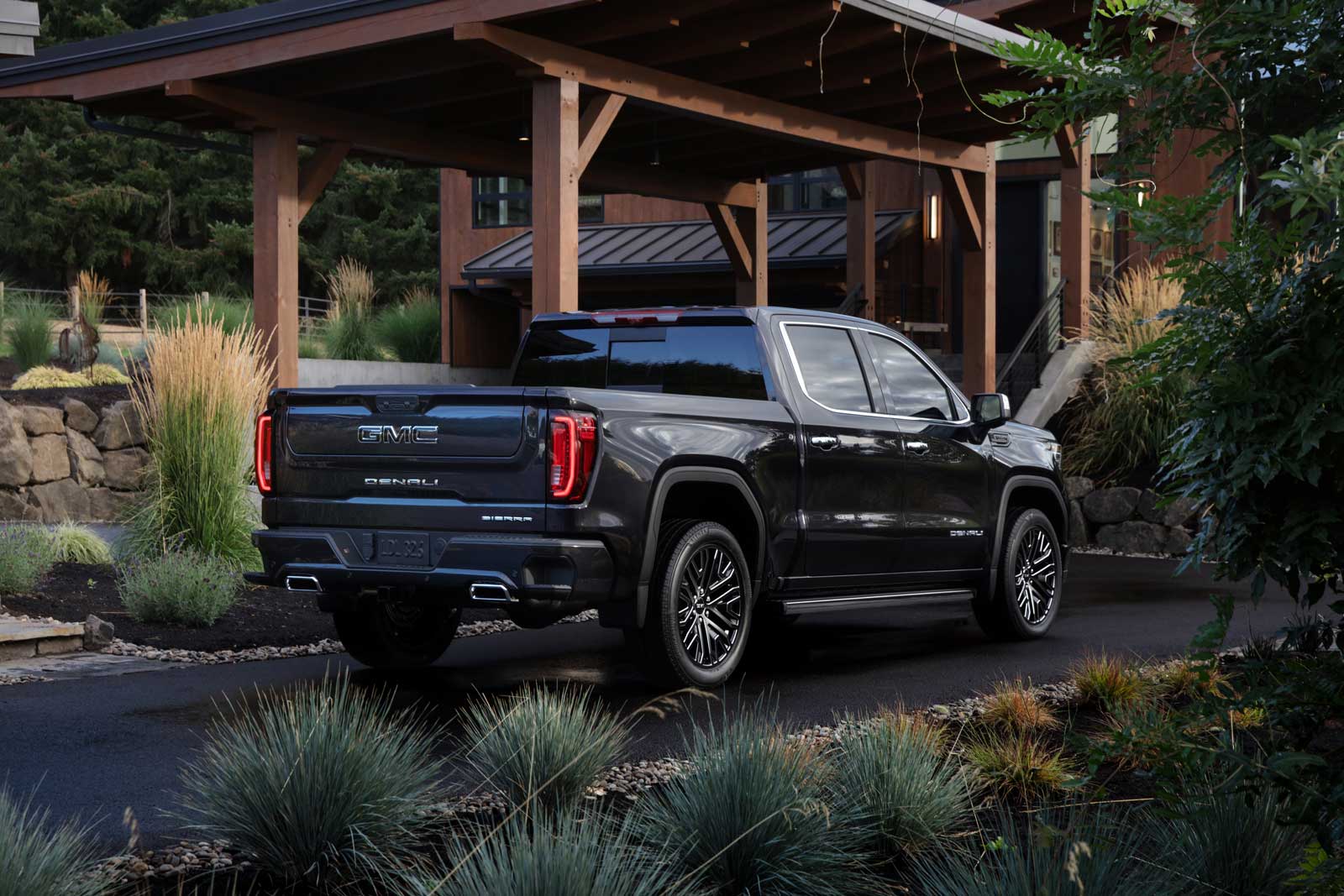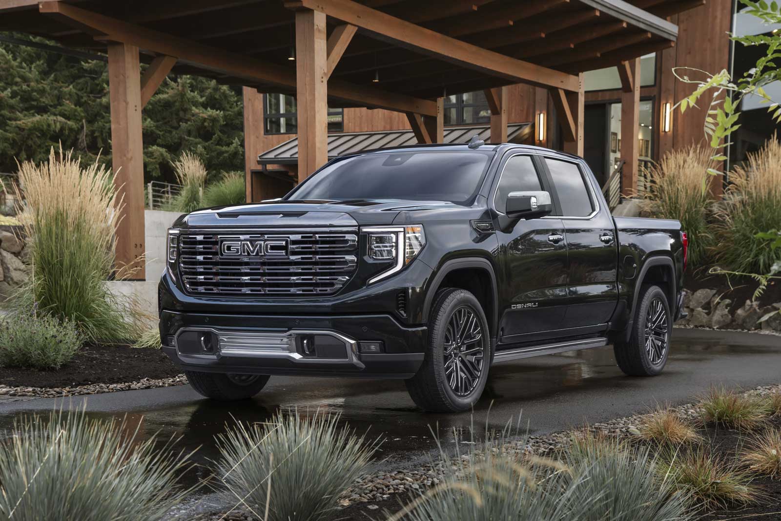 Le Sierra Denali Ultimate se range au-dessus de la version Denali existante, mais avec une présentation encore plus cossue et quelques éléments esthétiques distincts, comme la calandre en chrome foncé et les jantes foncées exclusives de 22 pouces. Le hayon MultiPro, les marchepieds électriques MultiPro et la caisse en fibre de carbone CarbonPro figurent tous de série, tout comme la suspension adaptative que l’on retrouvait déjà sur le Denali.
