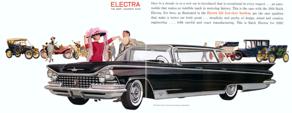 Le nom Electra semble tout à fait approprié pour un véhicule électrique et c’est une bonne occasion pour Buick de faire revenir un nom influent d’un endroit de son passé où la marque était considérée comme aspirationnelle et où conduire une Buick signifiait que vous aviez du succès dans votre carrière. La marque Electra a désigné les berlines les plus luxueuses de la marque de 1959 à 1990, date à laquelle elle a été remplacée par la Park Avenue.