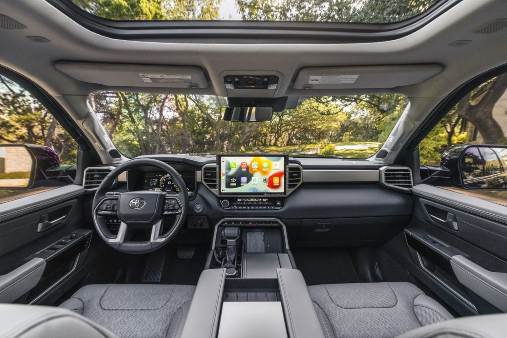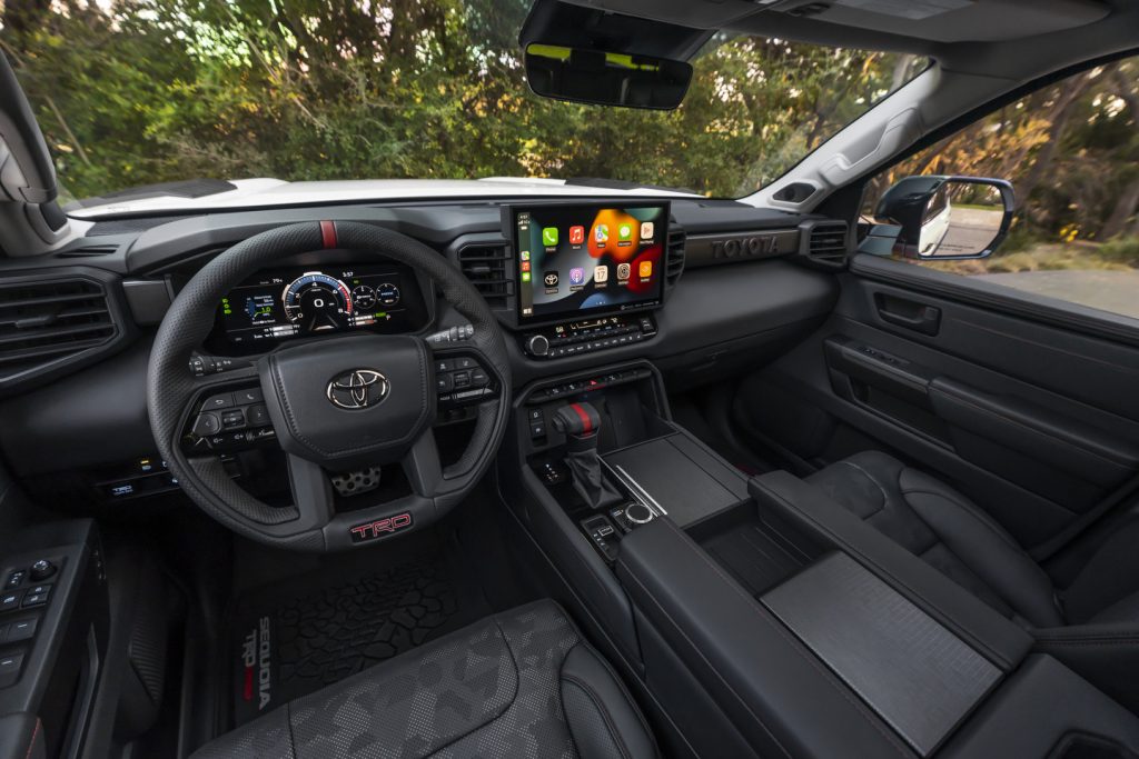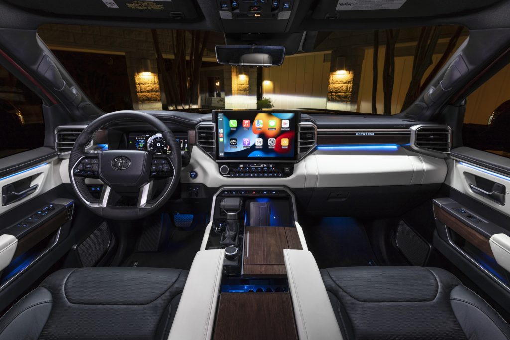 Les déclinaisons offertes sont TRD Off-Road, Limited, Platinum, TRD Pro et Capstone, cette dernière étant une nouvelle version hautement luxueuse. Parmi les caractéristiques disponibles, on retrouve un toit ouvrant panoramique, des sièges avant chauffants et ventilés, des sièges arrière chauffants, un volant chauffant, des roues en alliage de 18 à 22 pouces, des marchepieds à déploiement électrique, une sellerie en cuir semi-aniline, des boiseries à pores ouverts et une chaîne audio JBL à 14 haut-parleurs. Le système multimédia redessiné mise sur un écran tactile de huit pouces dans les versions plus abordables, et un écran de 14 pouces dans les déclinaisons plus chics. L’intégration sans fil d’Apple CarPlay et d’Android Auto est également disponible.