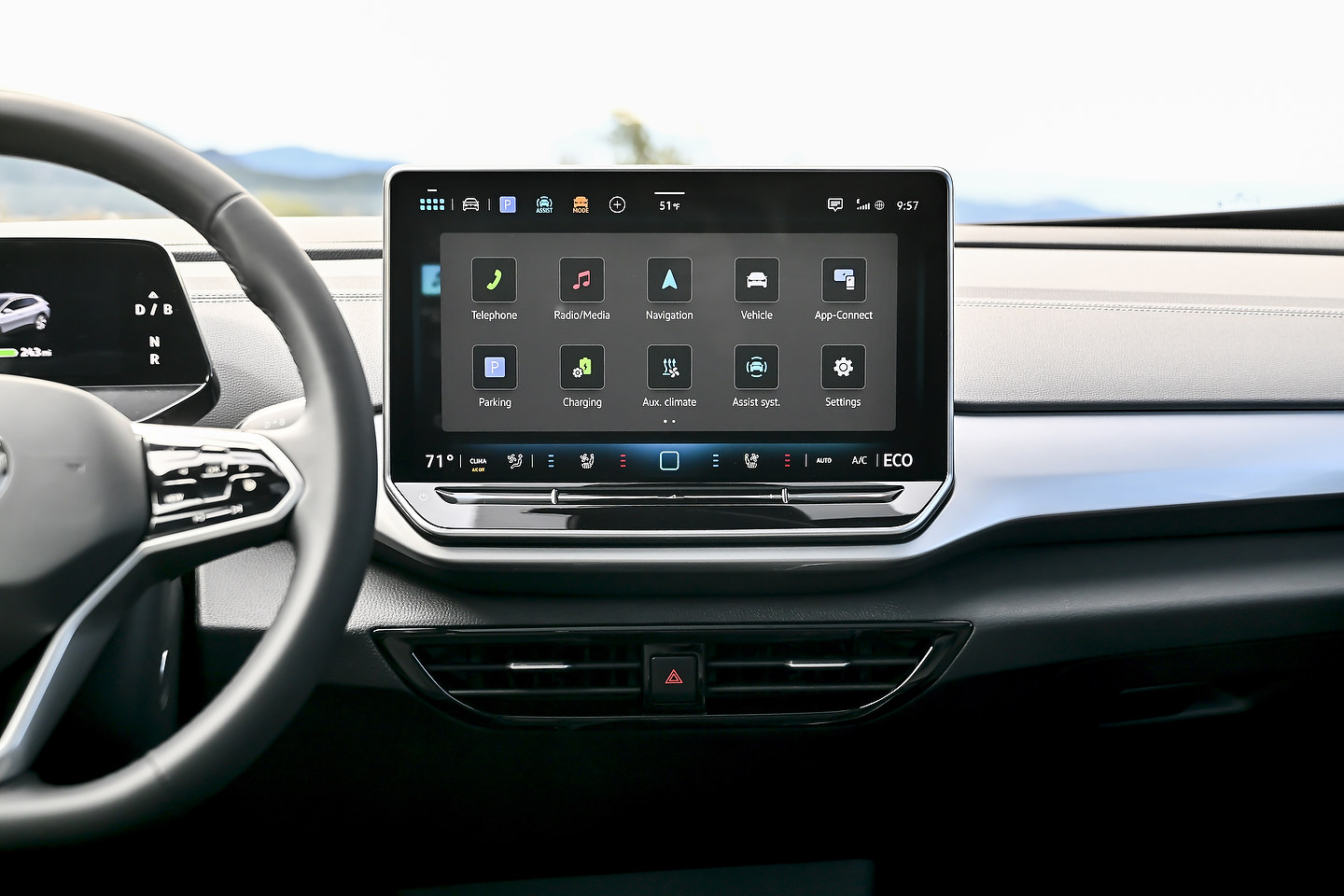 Les avancées technologiques de la 2024 ID.4 sont notables, notamment avec l’introduction d’un nouvel écran d’infodivertissement de 12,9 pouces avec curseurs rétroéclairés pour les modèles 82 kWh. Cela s’ajoute à la technologie avancée d’aide à la conduite IQ.DRIVE déjà robuste et à un système d’infodivertissement intelligent qui répond à la fois aux commandes vocales et tactiles.