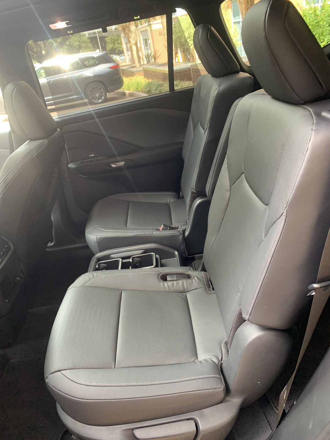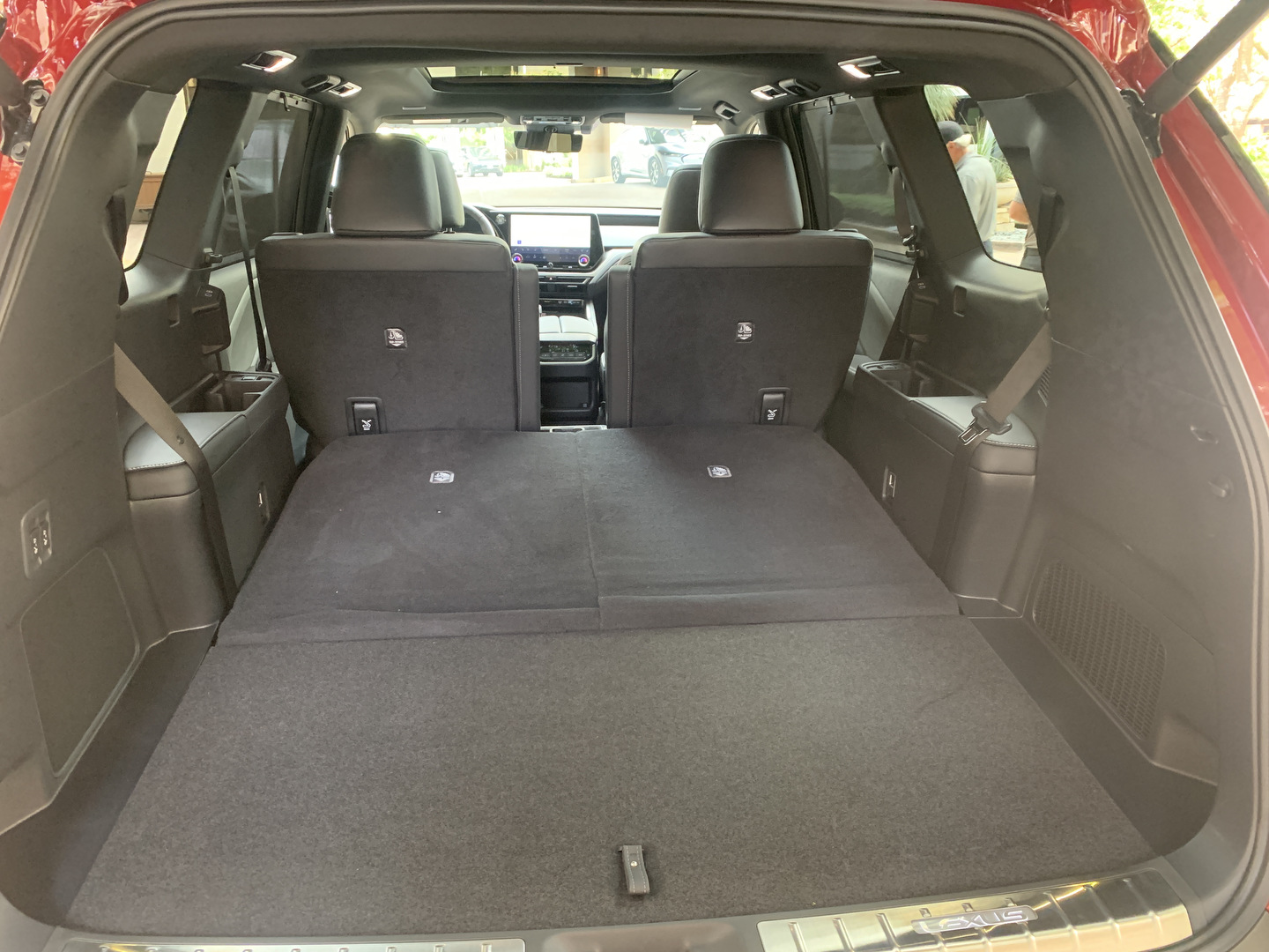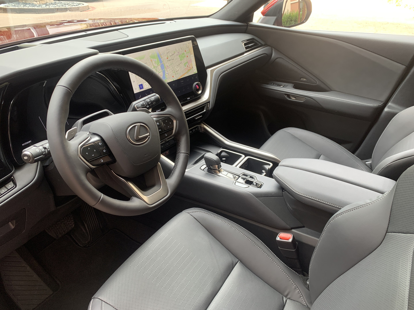 Le confort est le mot d’ordre au volant. Les ingénieurs de Lexus ont installé des joints d’étanchéité antibruit pour réduire les vibrations sonores dans les portières, le toit, et sous le plancher, améliorant ainsi l’insonorisation de l’habitacle. Les sièges capitaines offrent un confort similaire à ceux de l’avant, tandis que la banquette arrière est assez grande pour accueillir des adultes. Le silence de roulement est l’un des points forts du TX. Son empattement généreux contribue à une tenue de route stable. Lexus a travaillé sur l’aérodynamisme en soufflerie pour offrir une conduite stable. Le moteur de base est adéquat, bien que le moteur 4 cylindres turbo de 2,4 litres ne soit pas aussi vigoureux que les moteurs six cylindres de certains concurrents comme l’Acura MDX, ce qui se traduit par un temps de 0 à 100 km/h légèrement plus long. La version 500h, avec l’ajout d’un moteur électrique, offre une puissance accrue, passant de 275 à 366 chevaux, avec une économie de carburant supérieure. Les modèles hybrides sont associés à la traction intégrale DIRECT4 et aux roues arrière directrices dynamiques (DRS), offrant une maniabilité réactive et une stabilité accrue, améliorant ainsi la maniabilité à basse vitesse et offrant un court rayon de braquage. La conduite n’a rien de sportive, mais le véhicule est stable, silencieux et c’est d’abord ce que recherche les gens qui vont acheter ce véhicule. Si vous allez chercher plus loin dans votre portefeuille, le 550h+ va vous surprendre avec ses 404 chevaux qui n’ont rien de sauvage, mais un peu à la manière d’un Volvo XC90 pousse très fort sans faire de vague.