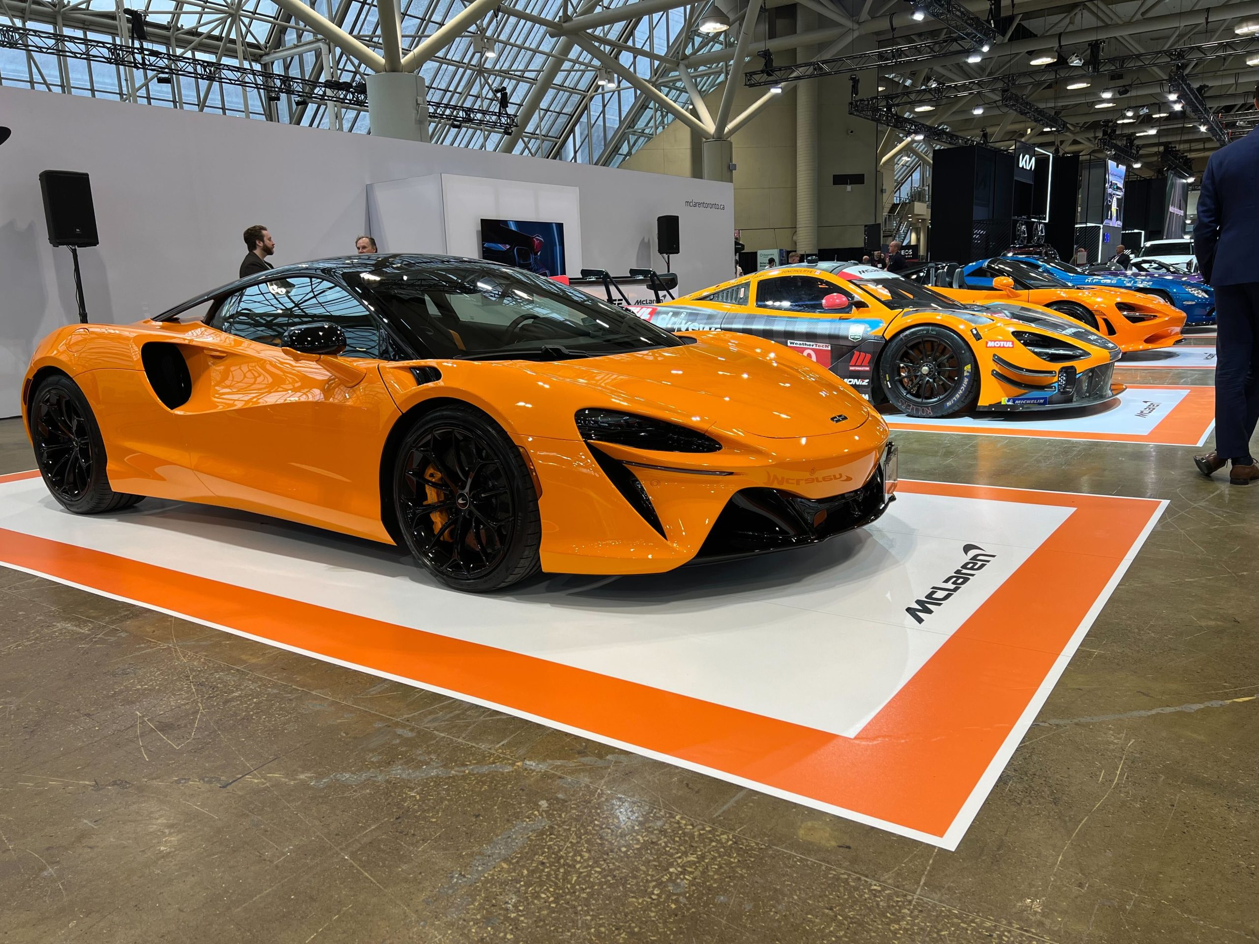 Présentée pour la première fois à Montréal, la GTS prend place sur le stand McLaren en tant que supercar la plus récente et la plus utilisable de la marque. Une évolution de la GT des années passées, la GTS poursuit le rôle de son prédécesseur en tant que voiture de Grand Tourisme à l’aise aussi bien sur circuit que dans la circulation urbaine. Alors qu’aucune supercar n’est jamais totalement pratique pour la conduite quotidienne, la McLaren GTS se veut aussi polyvalente que possible, combinant des performances impressionnantes avec un habitacle confortable et plus d’espace de chargement que ce que l’on pourrait attendre de ce type de véhicule. La GTS est plus légère et plus puissante que la GT, son V8 biturbo de 4,0 litres d’origine AMG développant 626 chevaux et 465 lb-pi de couple. Cela se traduit par des temps d’accélération de 3,2 secondes pour le 0 à 100 km/h et de 8,9 secondes pour le 0 à 200 km/h, avec une vitesse maximale fixée à 326 km/h.