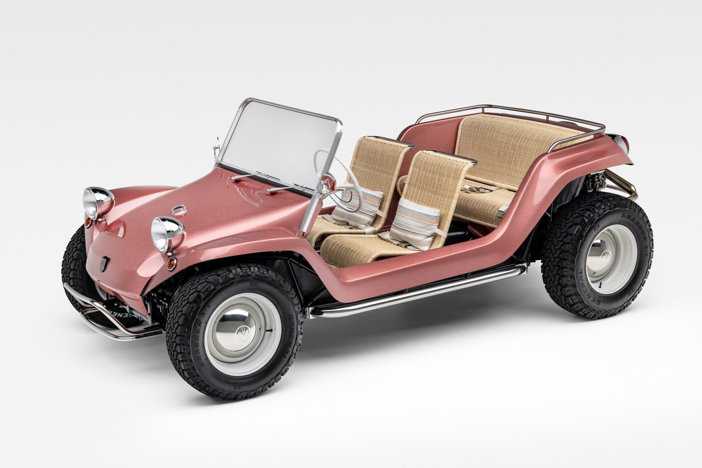 Lors de l’événement, l’entreprise a présenté une carrosserie Remastered Resorter en écailles de métal Rose Copper, avec des sièges en osier pour les passagers avant et arrière. Les kits Remastered Resorter seront disponibles à l’automne et les prix seront annoncés à l’approche du lancement.